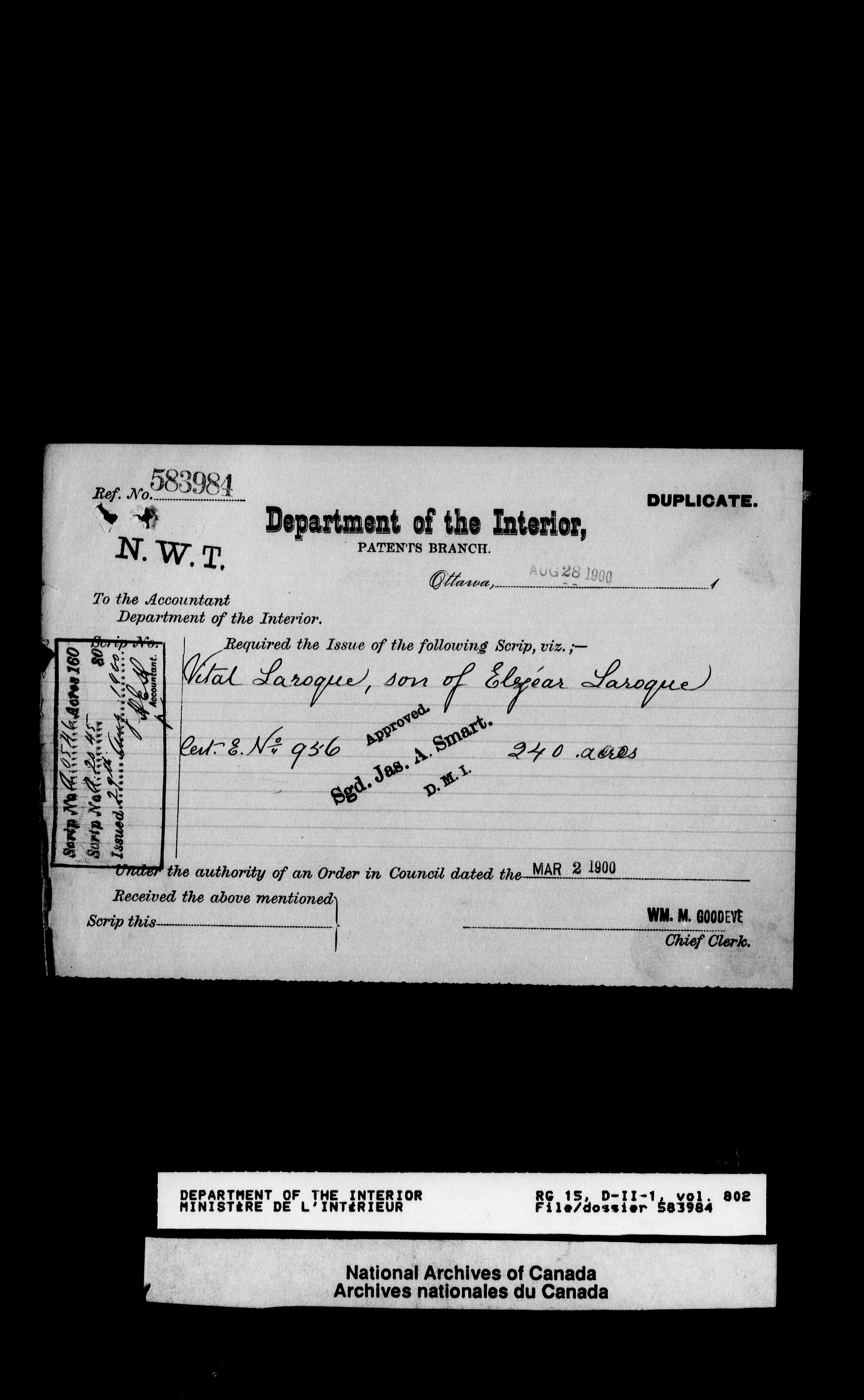 Central registry subject files created by the Dominion Lands Branch - 12629