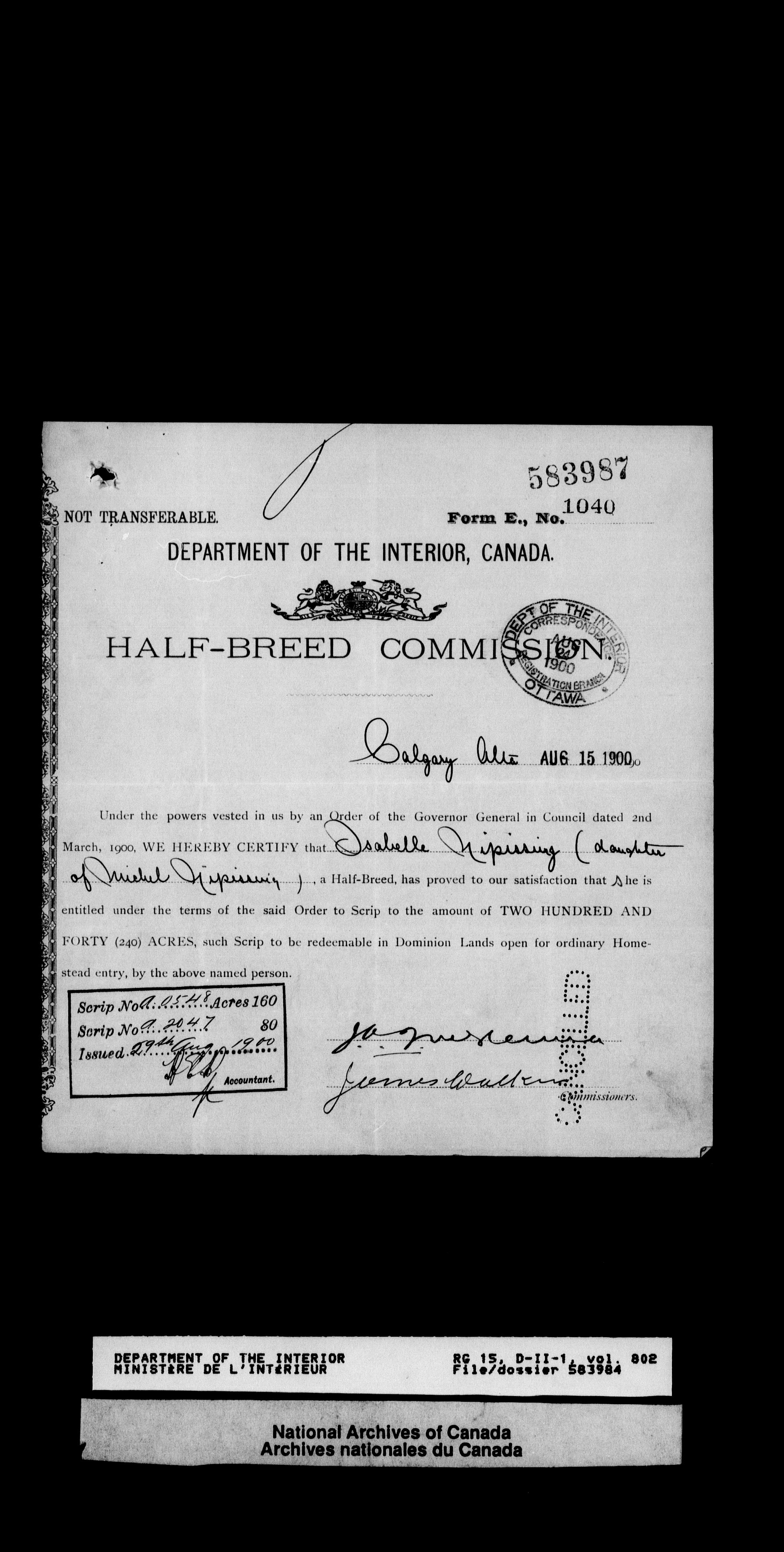Central registry subject files created by the Dominion Lands Branch - 12629