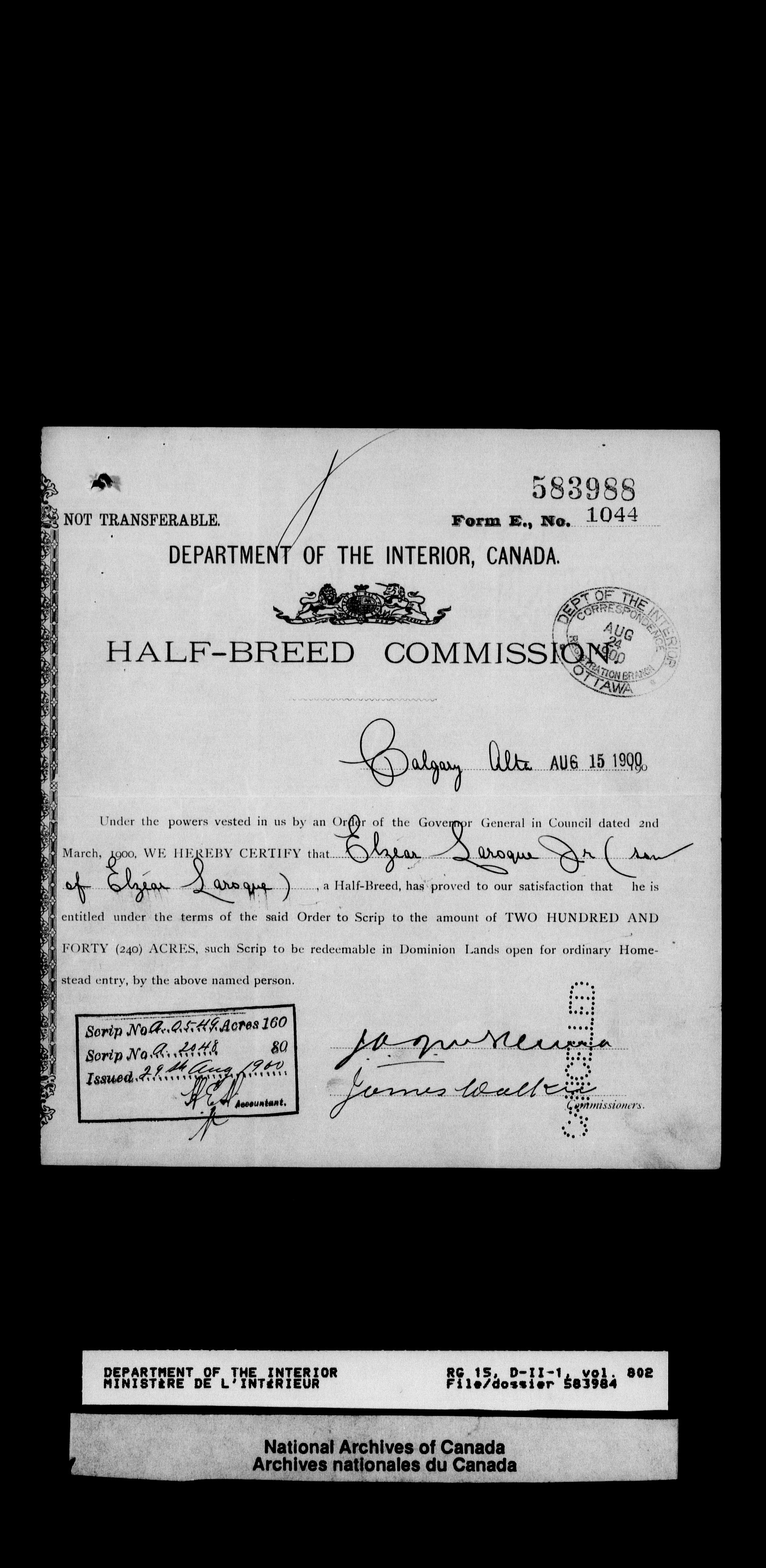 Central registry subject files created by the Dominion Lands Branch - 12629