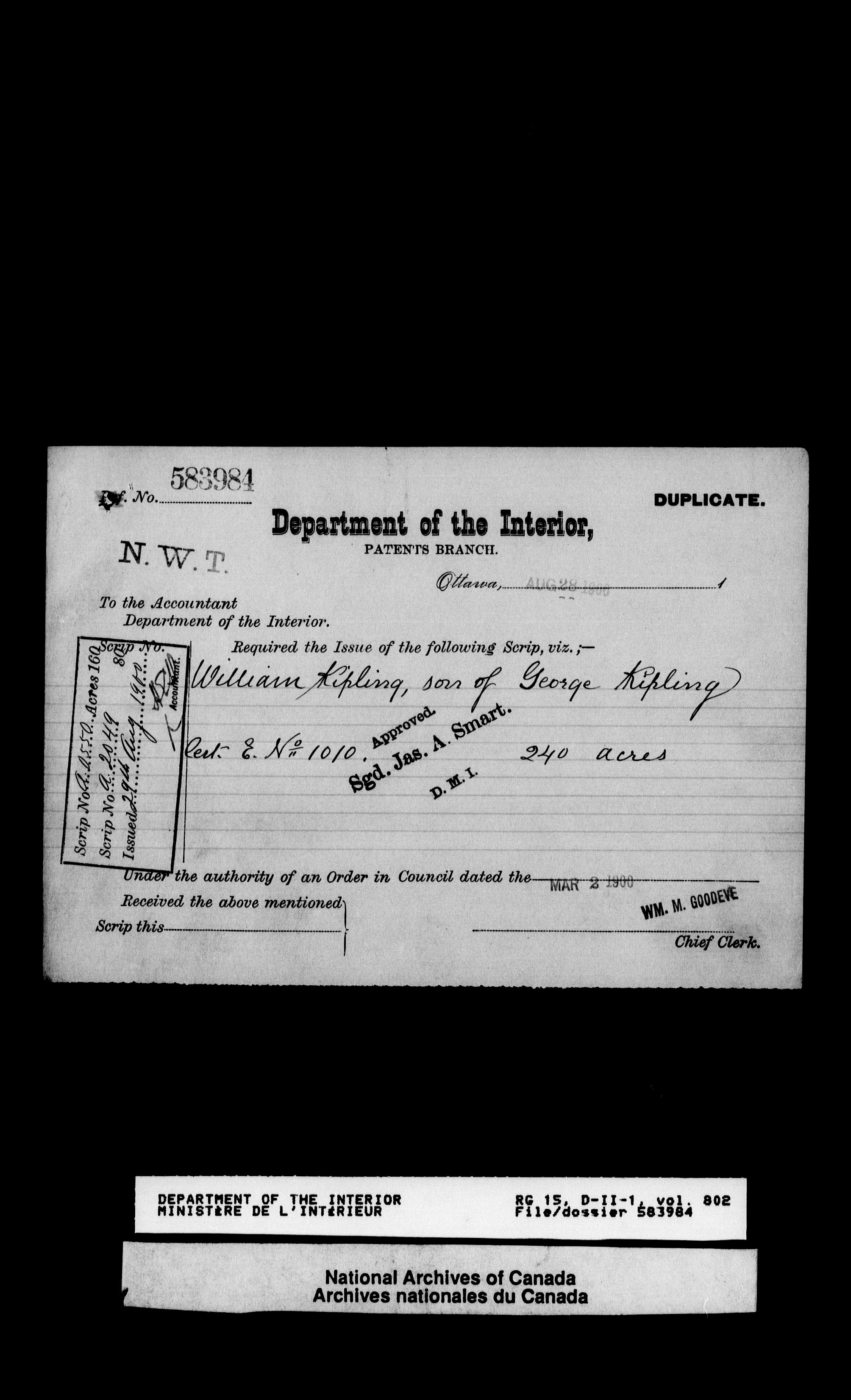 Central registry subject files created by the Dominion Lands Branch - 12629