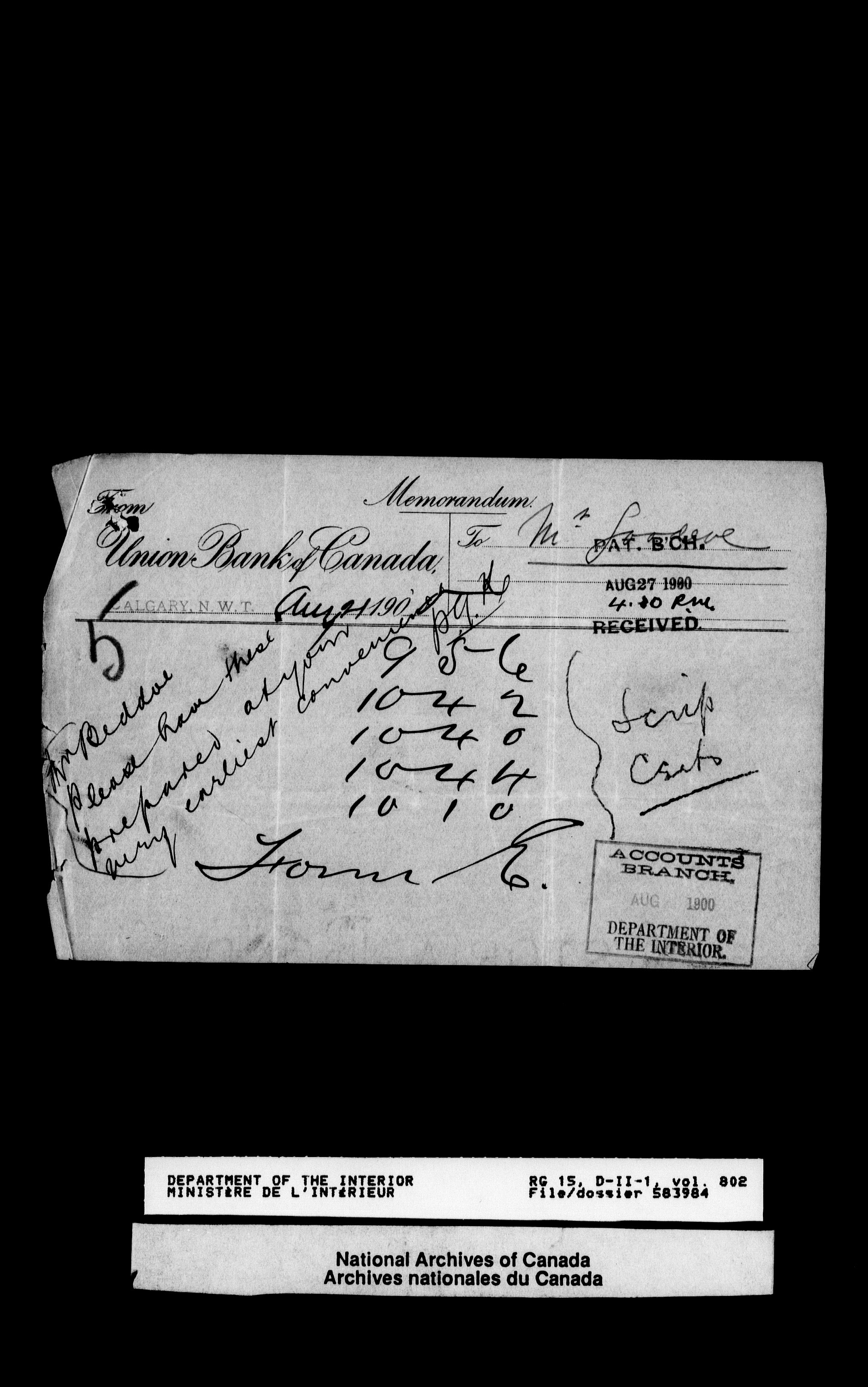 Central registry subject files created by the Dominion Lands Branch - 12629