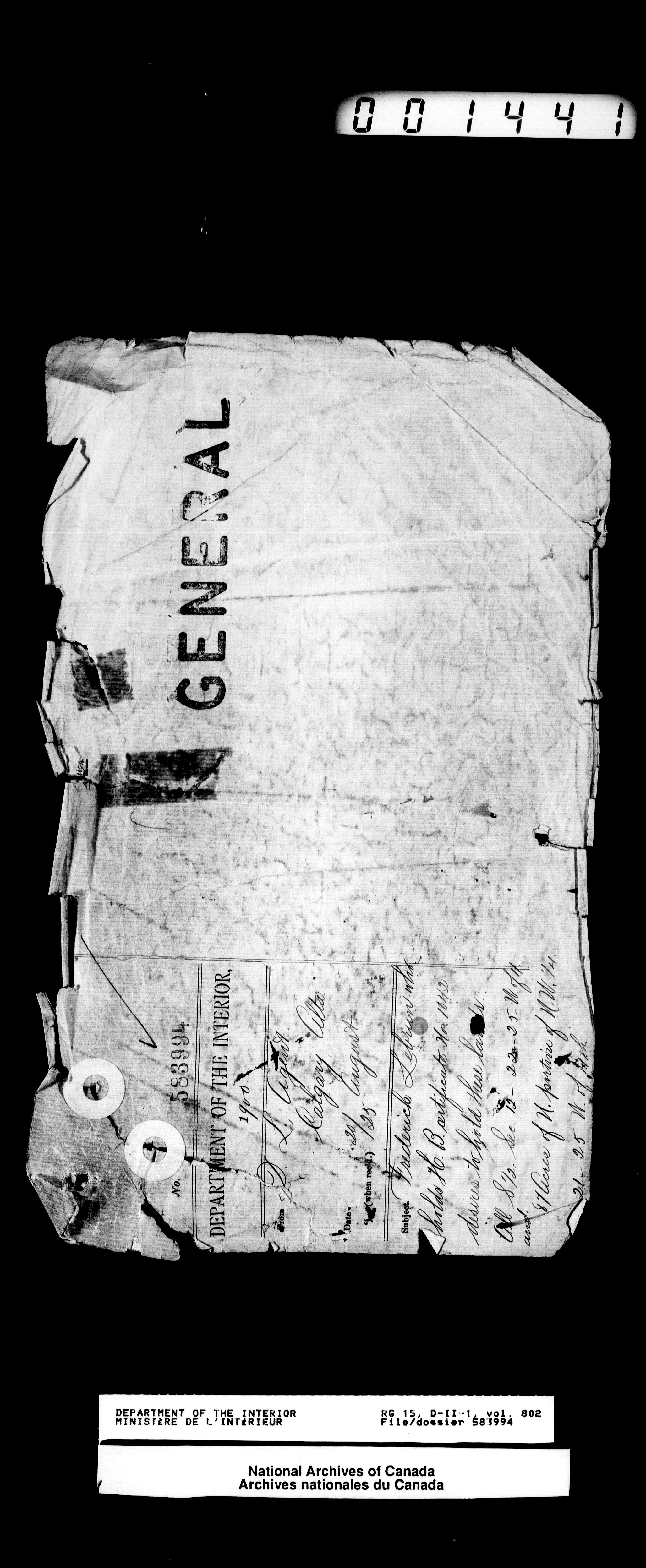 Central registry subject files created by the Dominion Lands Branch - 12629
