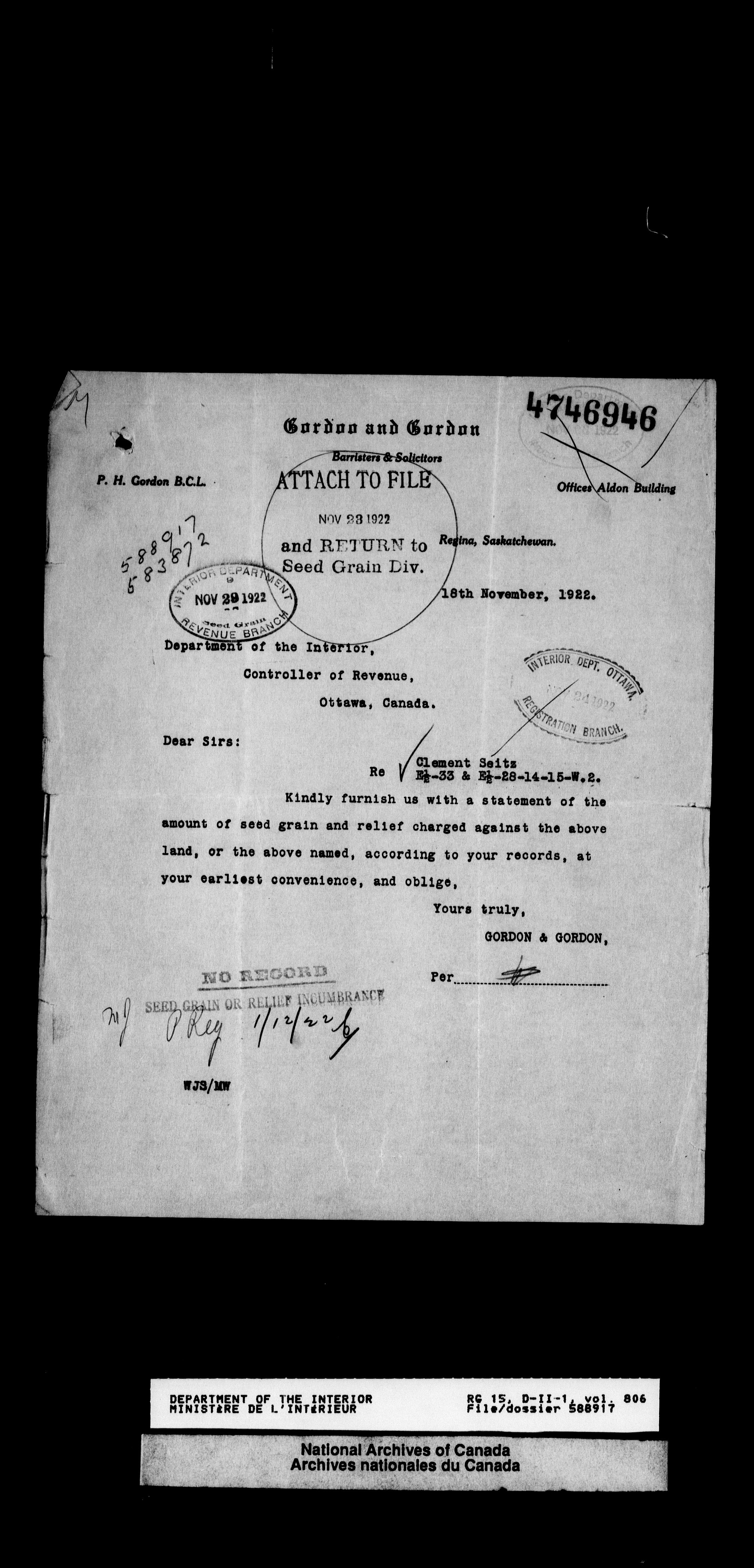 Central registry subject files created by the Dominion Lands Branch - 12632