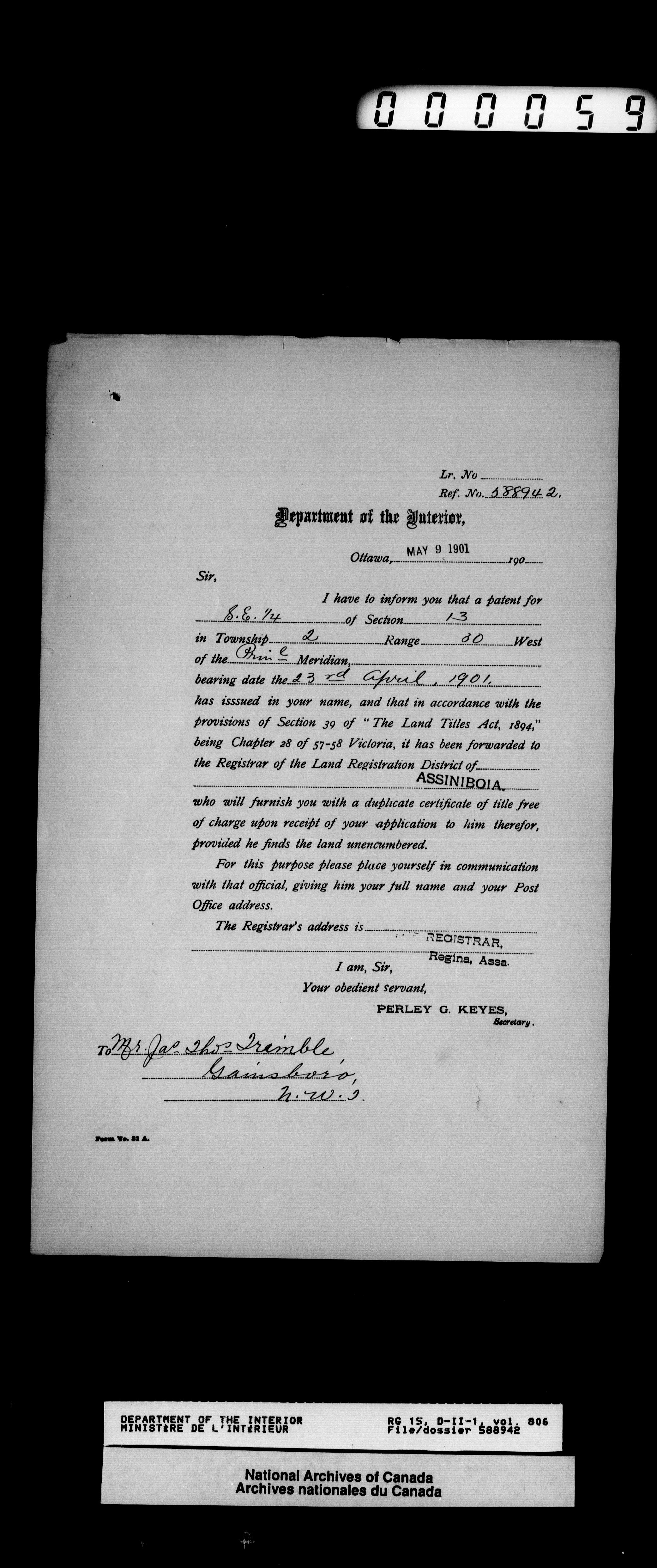 Dominion Lands Branch registry : T-12633