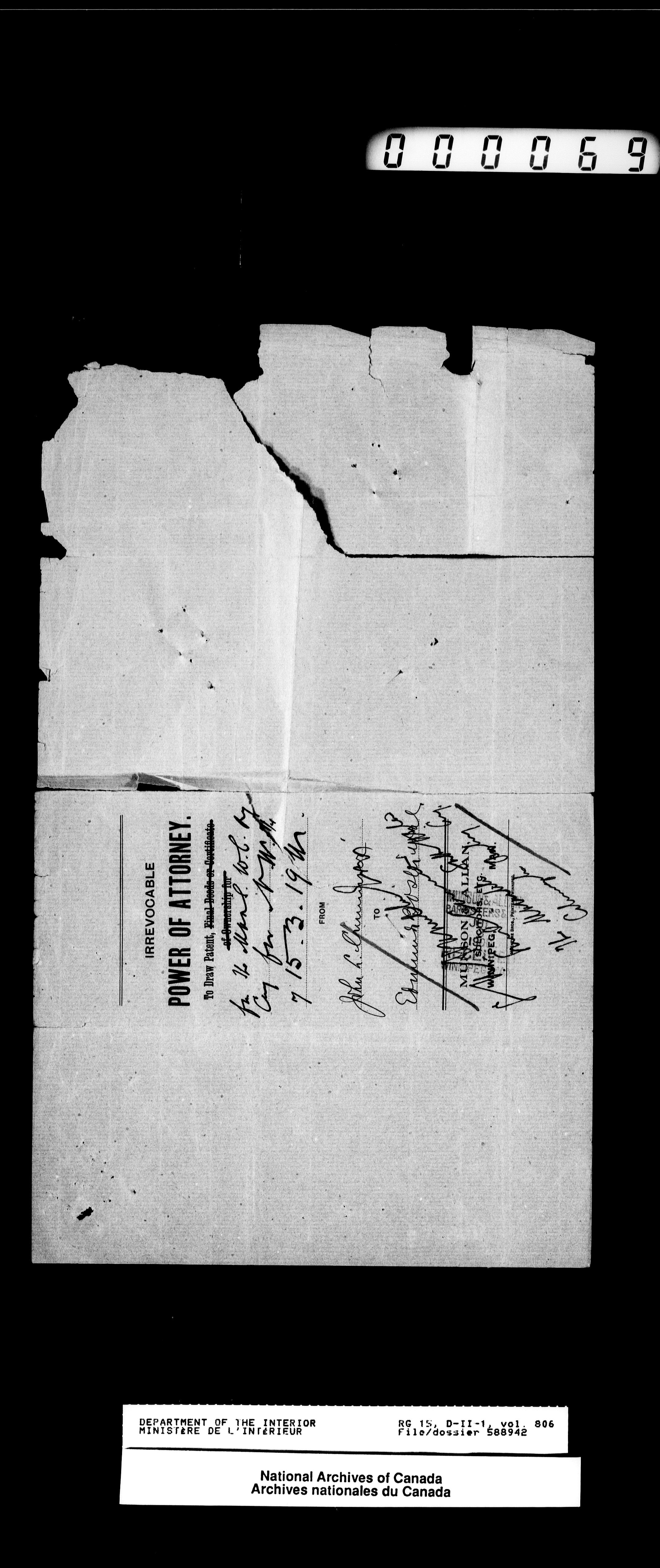 Department of Interior, Dominion Lands Branch, Headquarters correspondence, 1871-1946