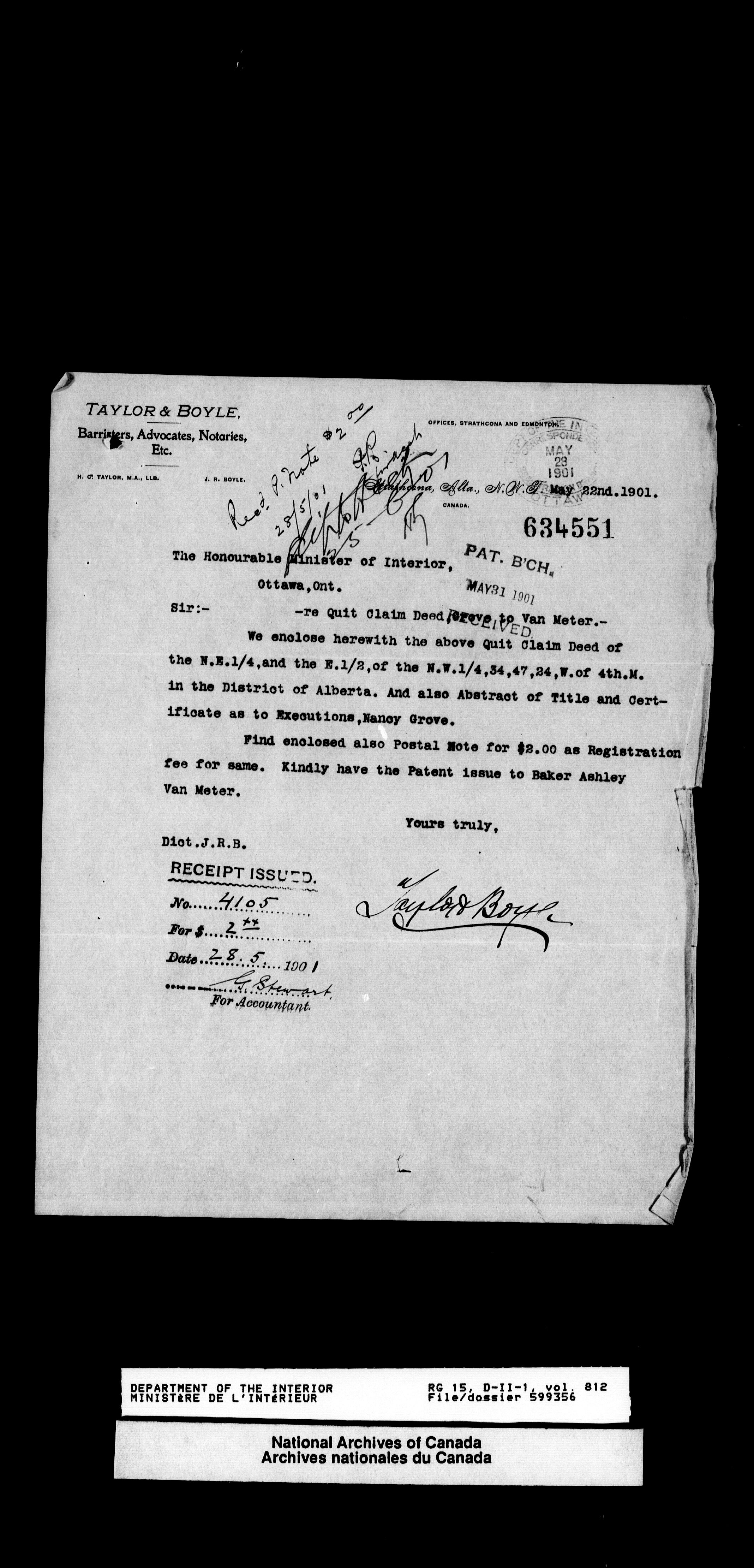 Central registry subject files created by the Dominion Lands Branch - T-12638