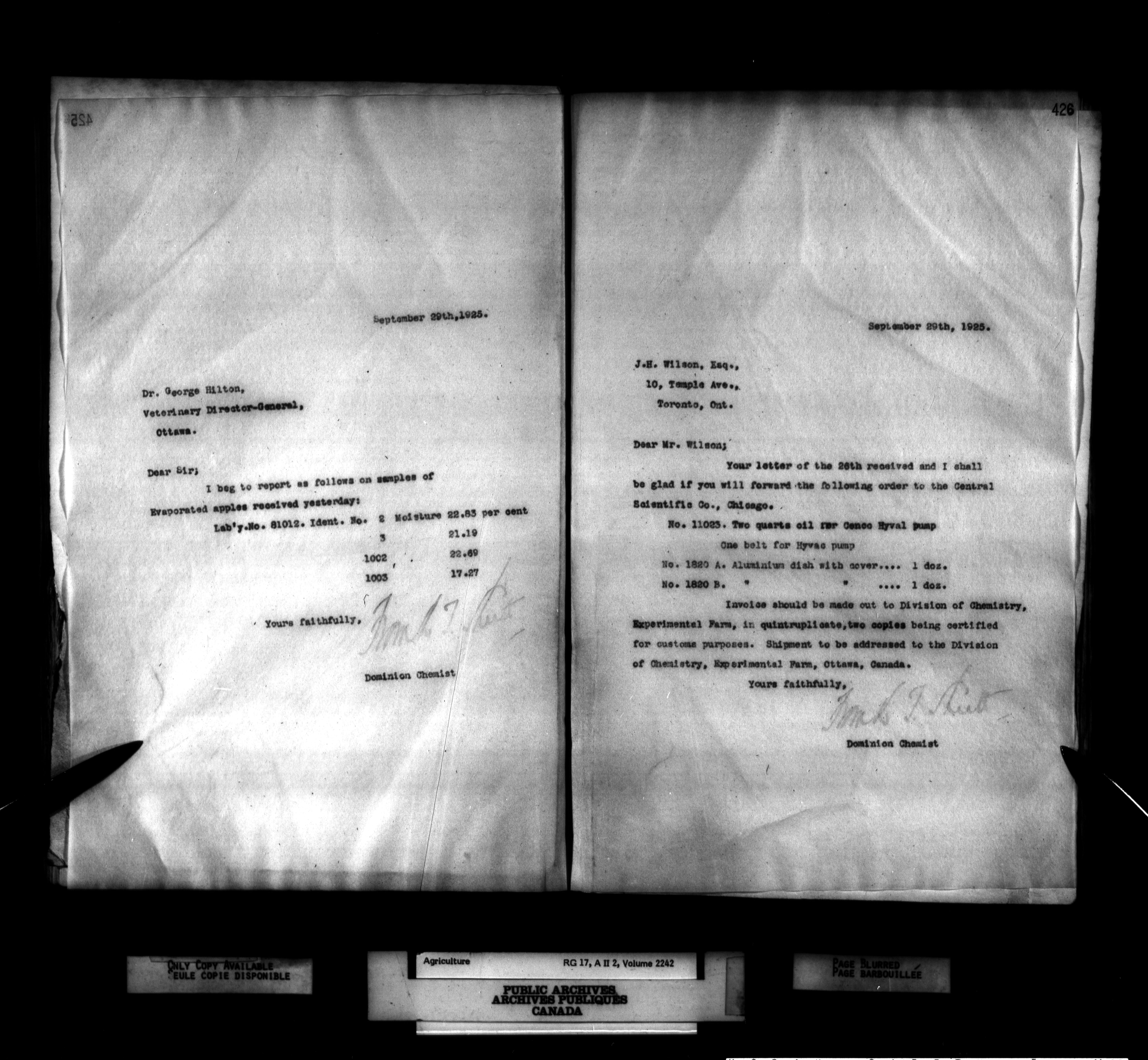 Department of Agriculture, Dominion Chemist : Letterbooks, 1889 - 1933 : T-1264