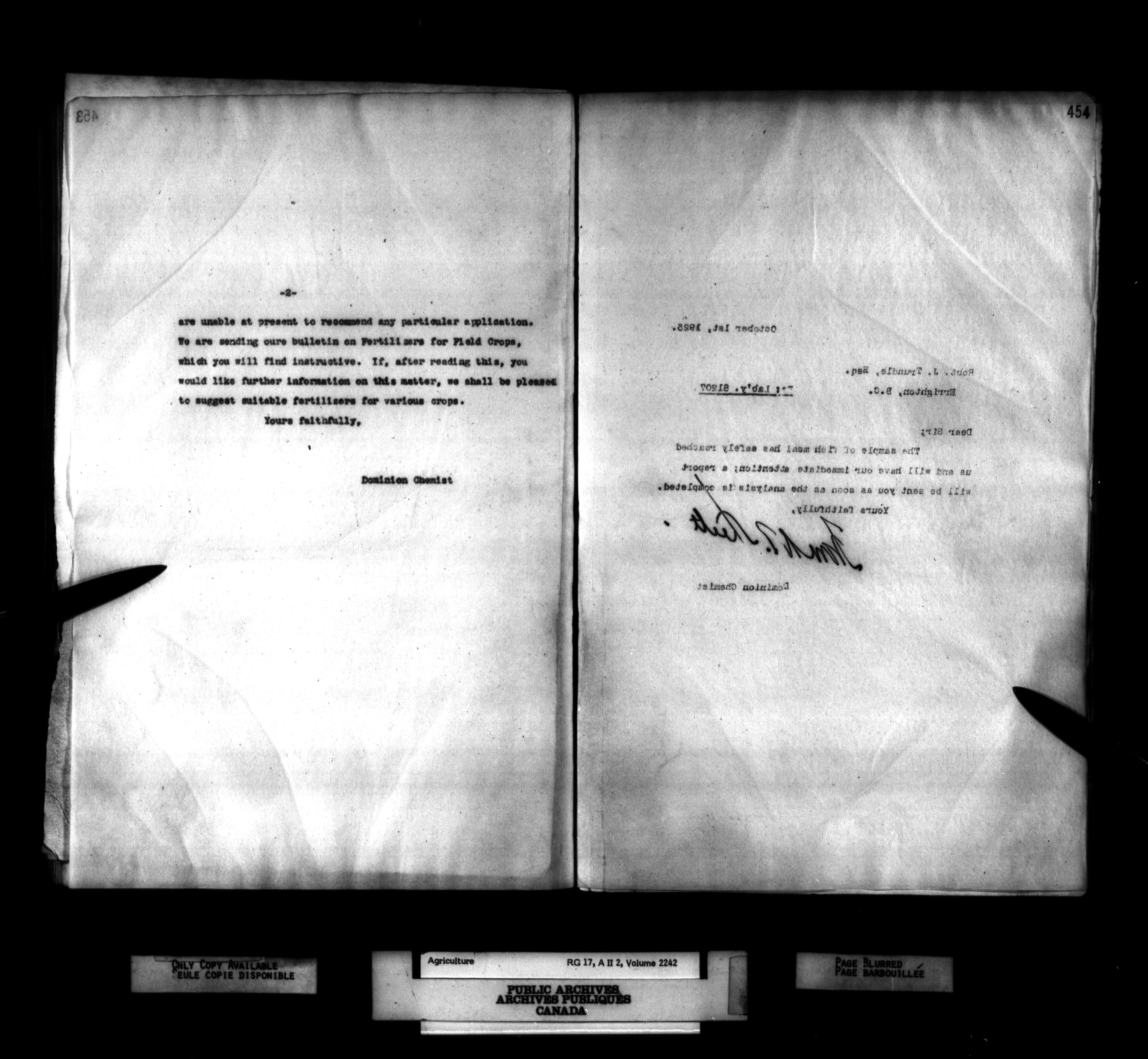 Department of Agriculture : Dominion Chemist, letterbooks - 1264