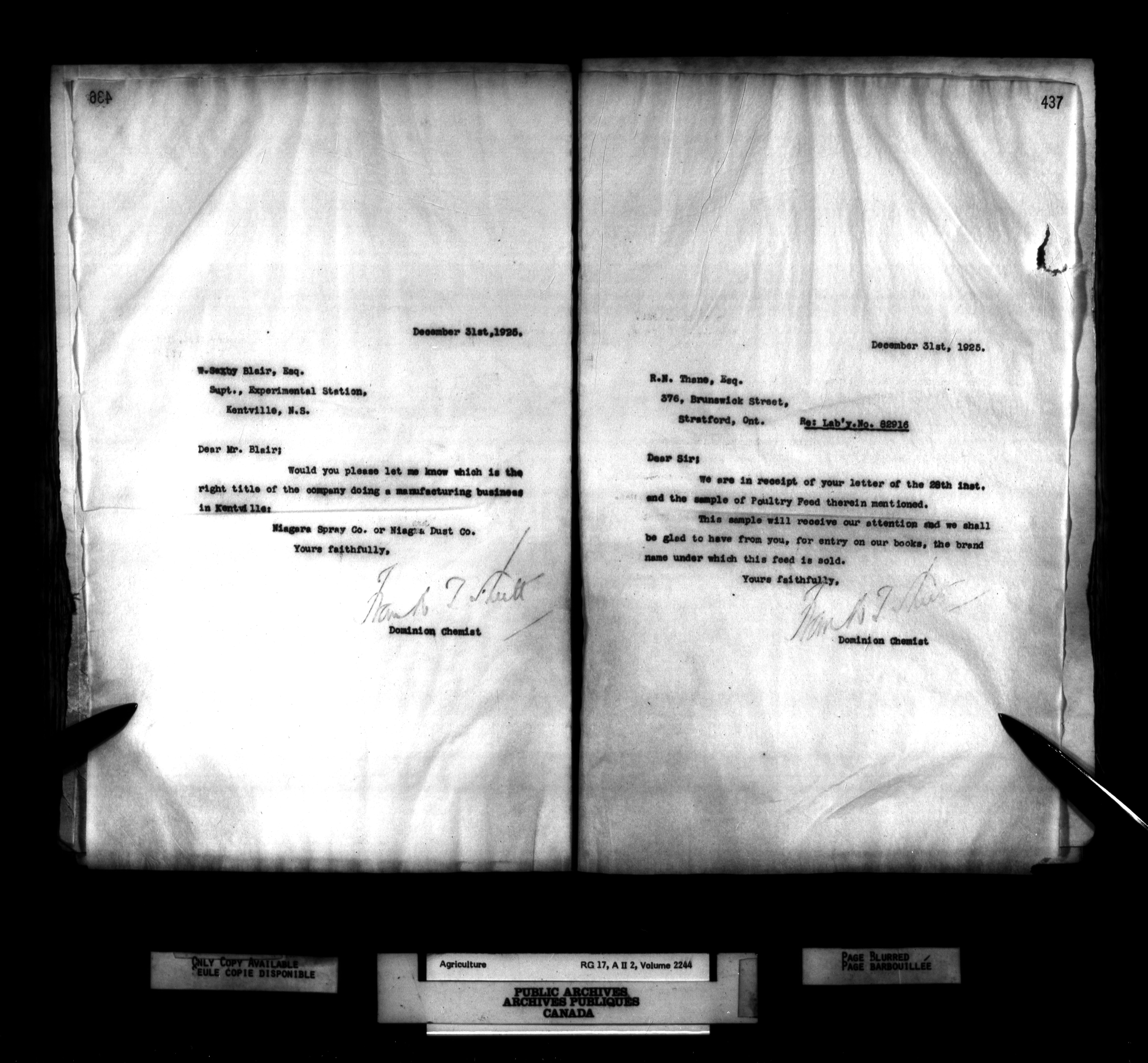Department of Agriculture, Dominion Chemist : Letterbooks, 1889 - 1933 : T-1264