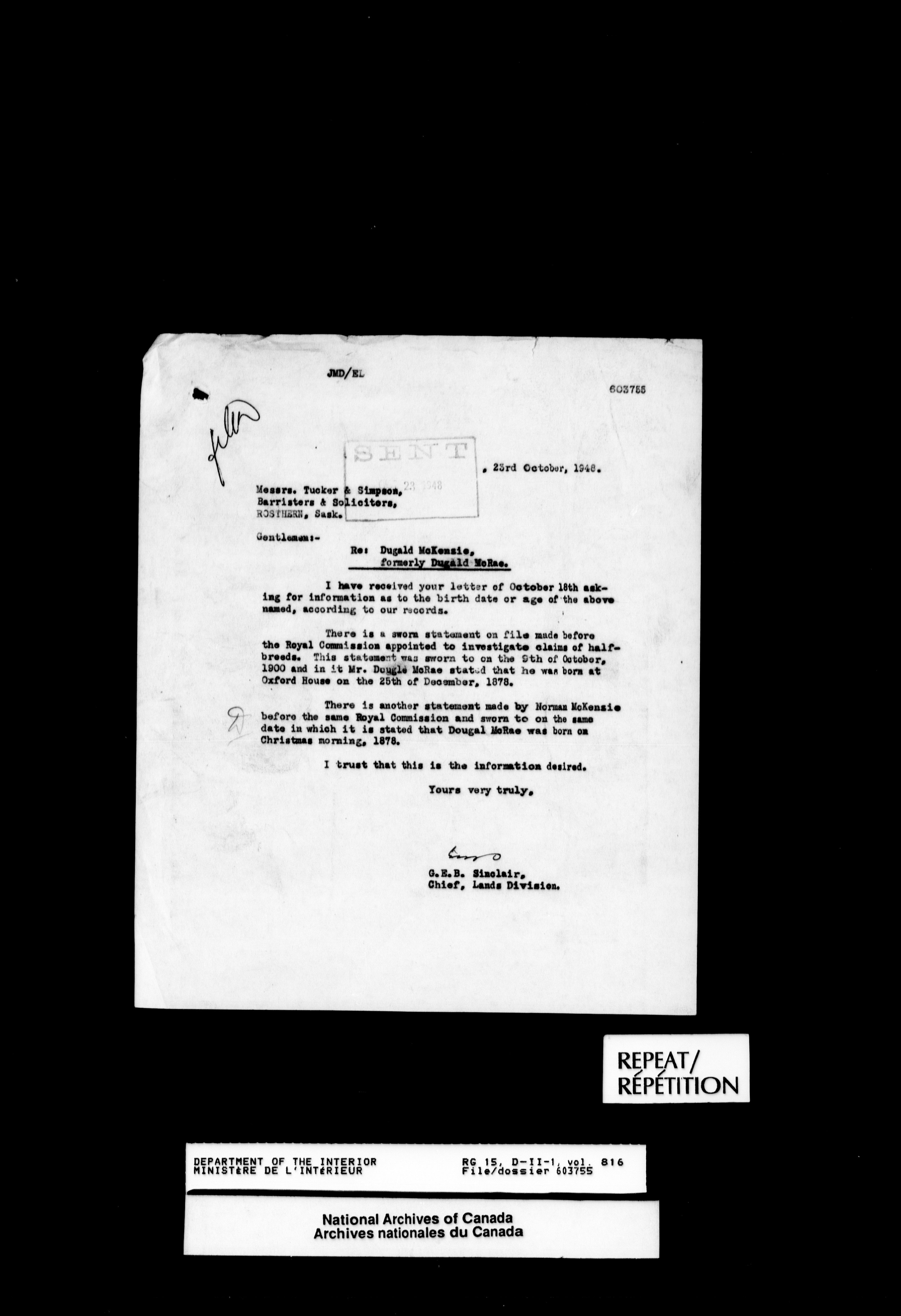 Central registry subject files created by the Dominion Lands Branch - 12641