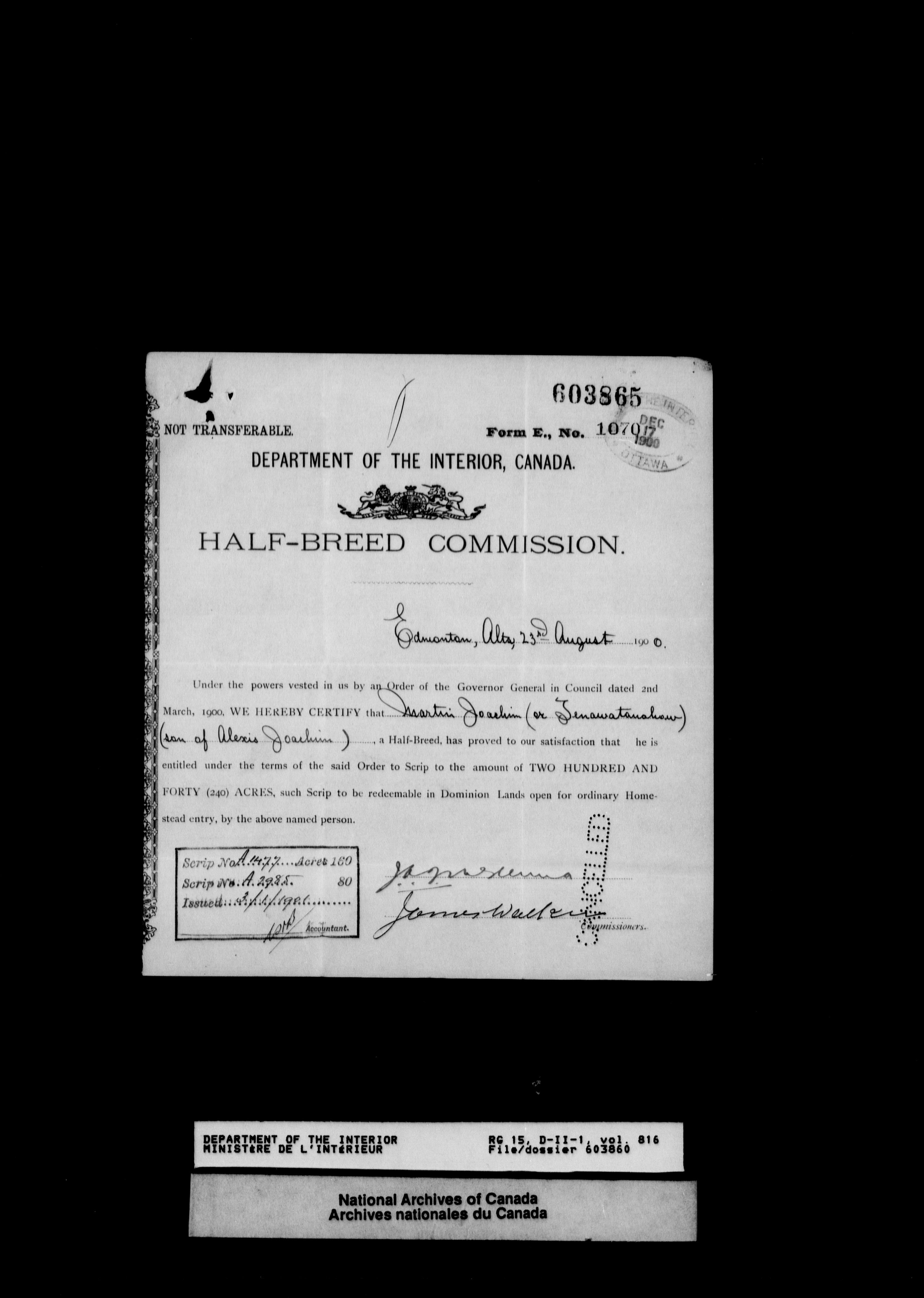 Central registry subject files created by the Dominion Lands Branch - 12641