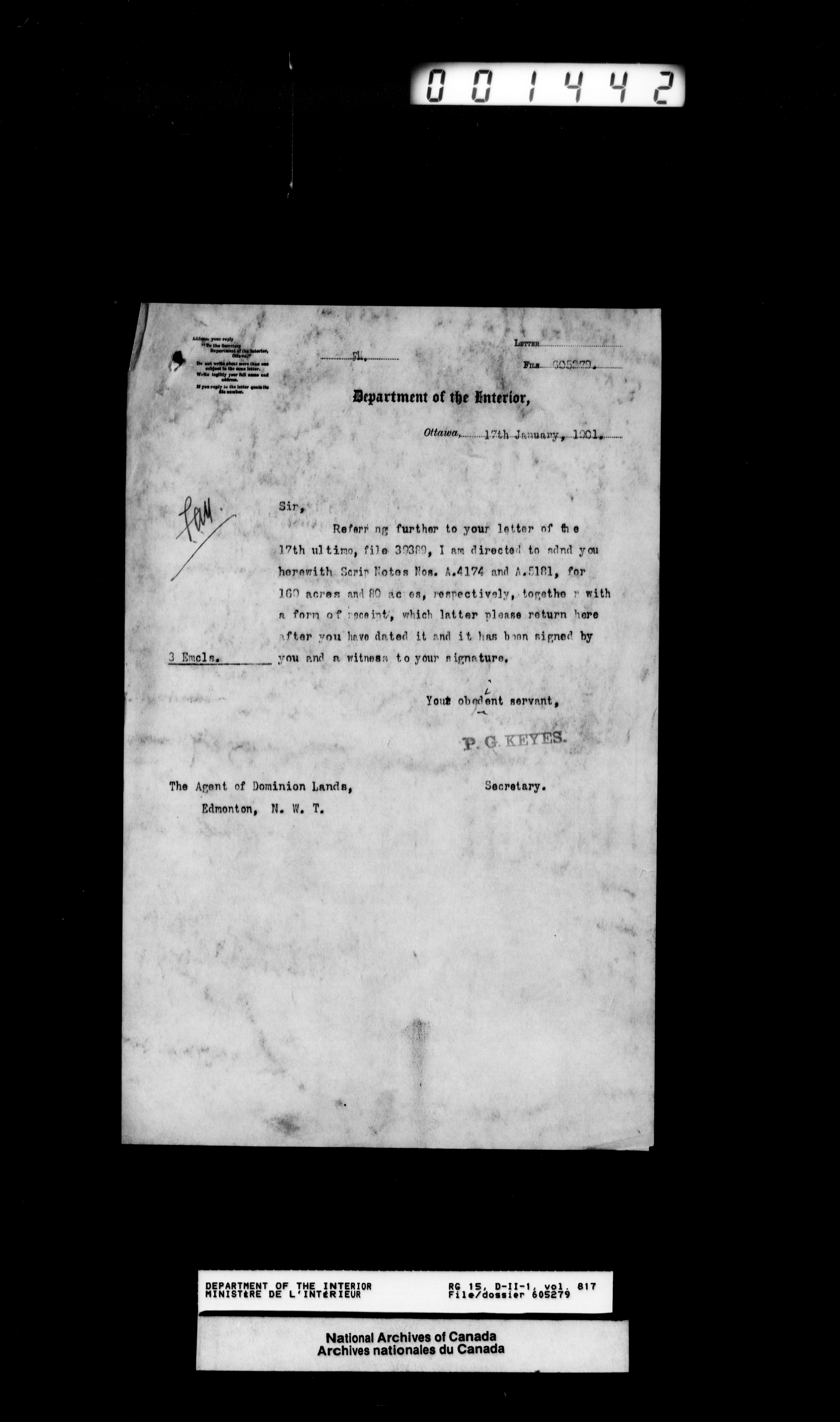 Central registry subject files created by the Dominion Lands Branch - 12641