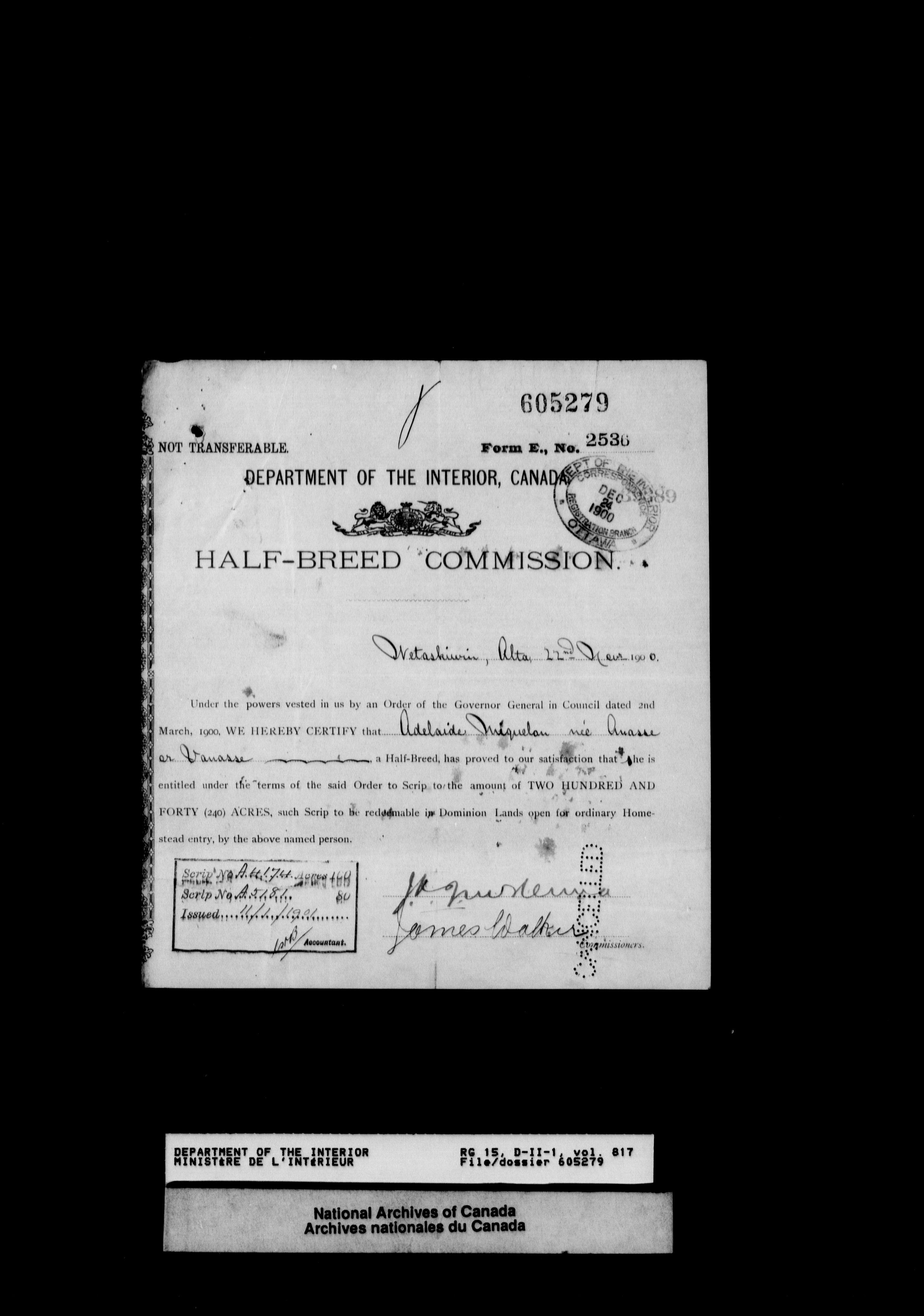 Central registry subject files created by the Dominion Lands Branch - 12641