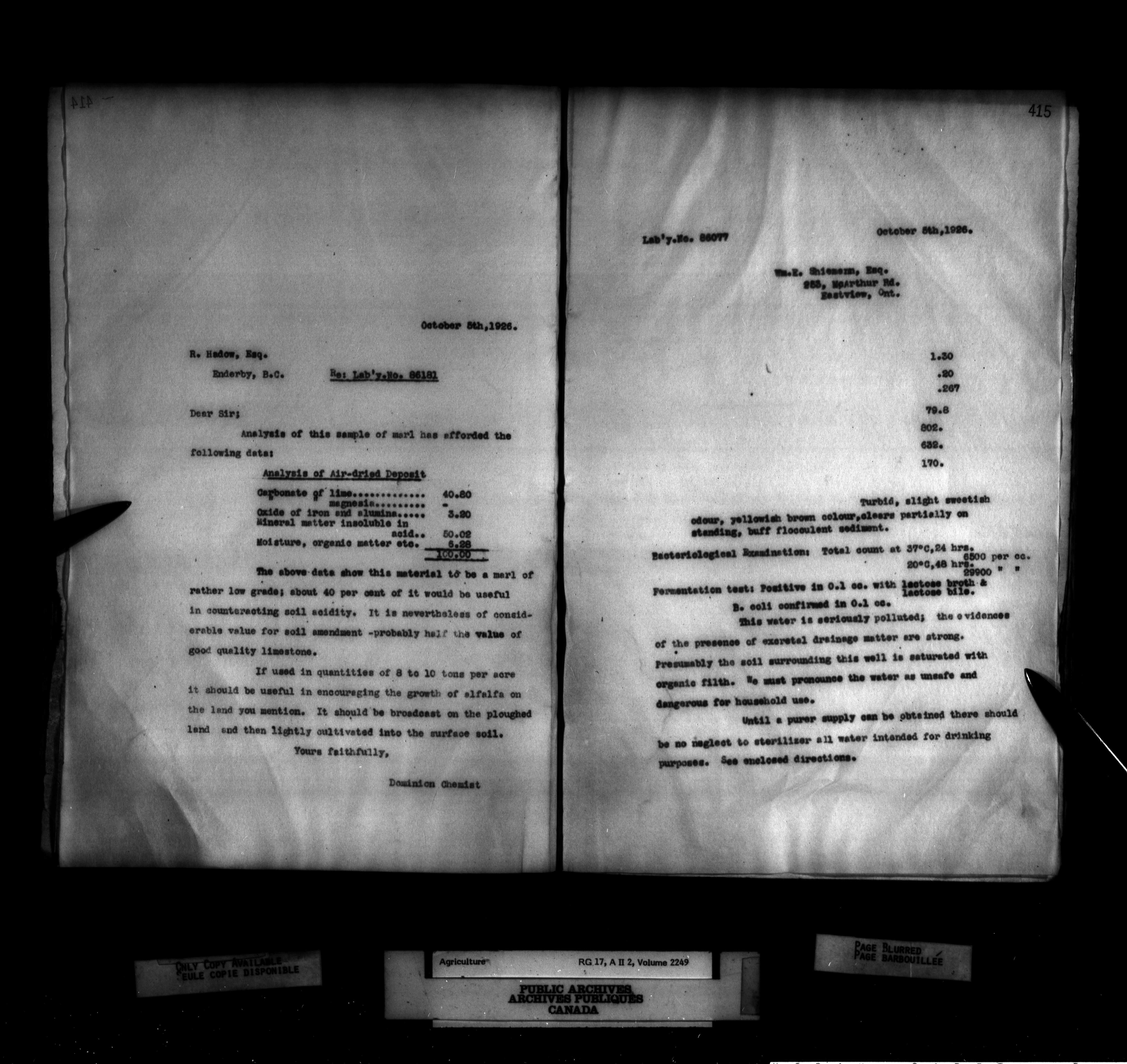 Department of Agriculture : Dominion Chemist, letterbooks - 1266