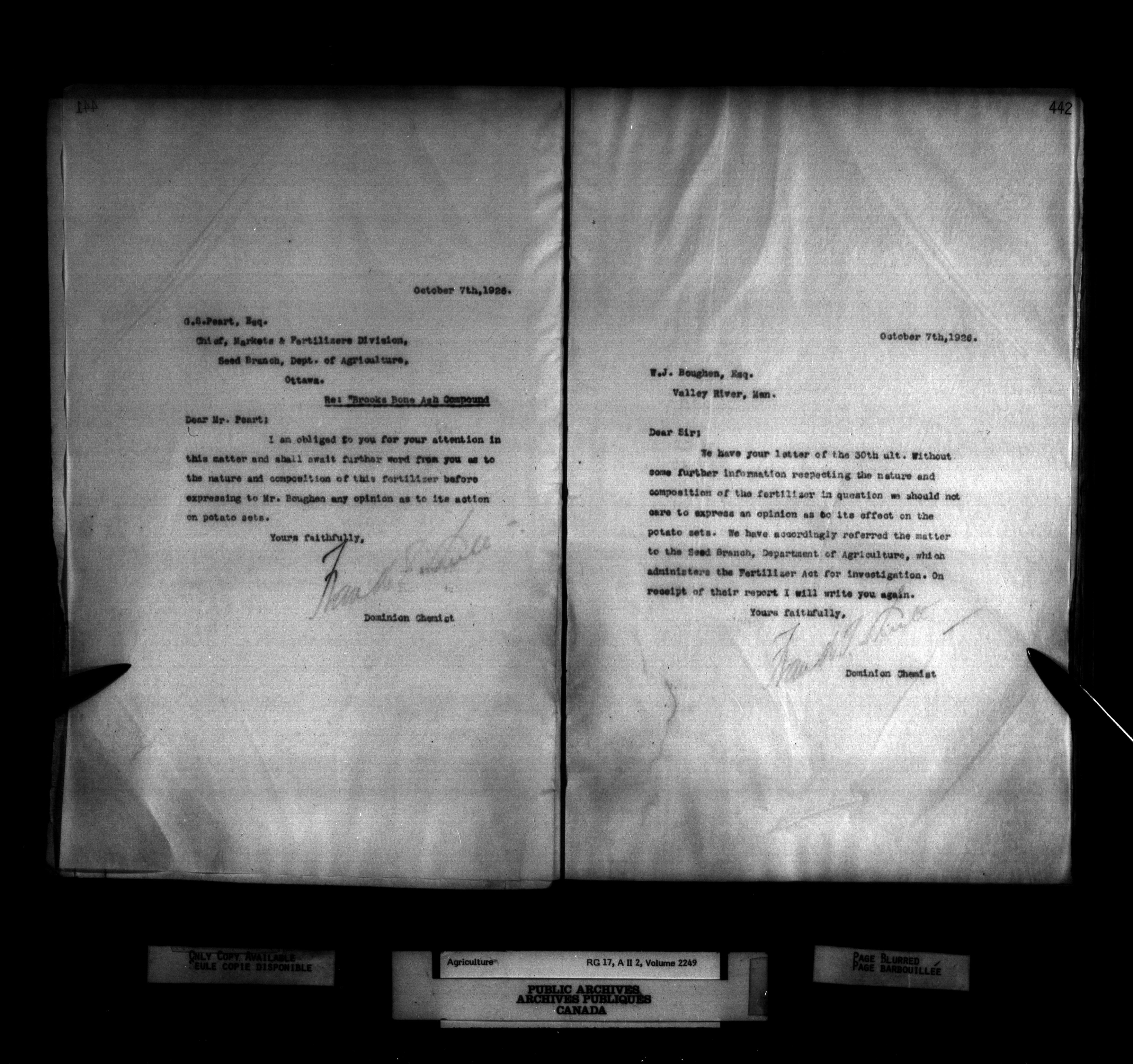 Department of Agriculture : Dominion Chemist, letterbooks - 1266