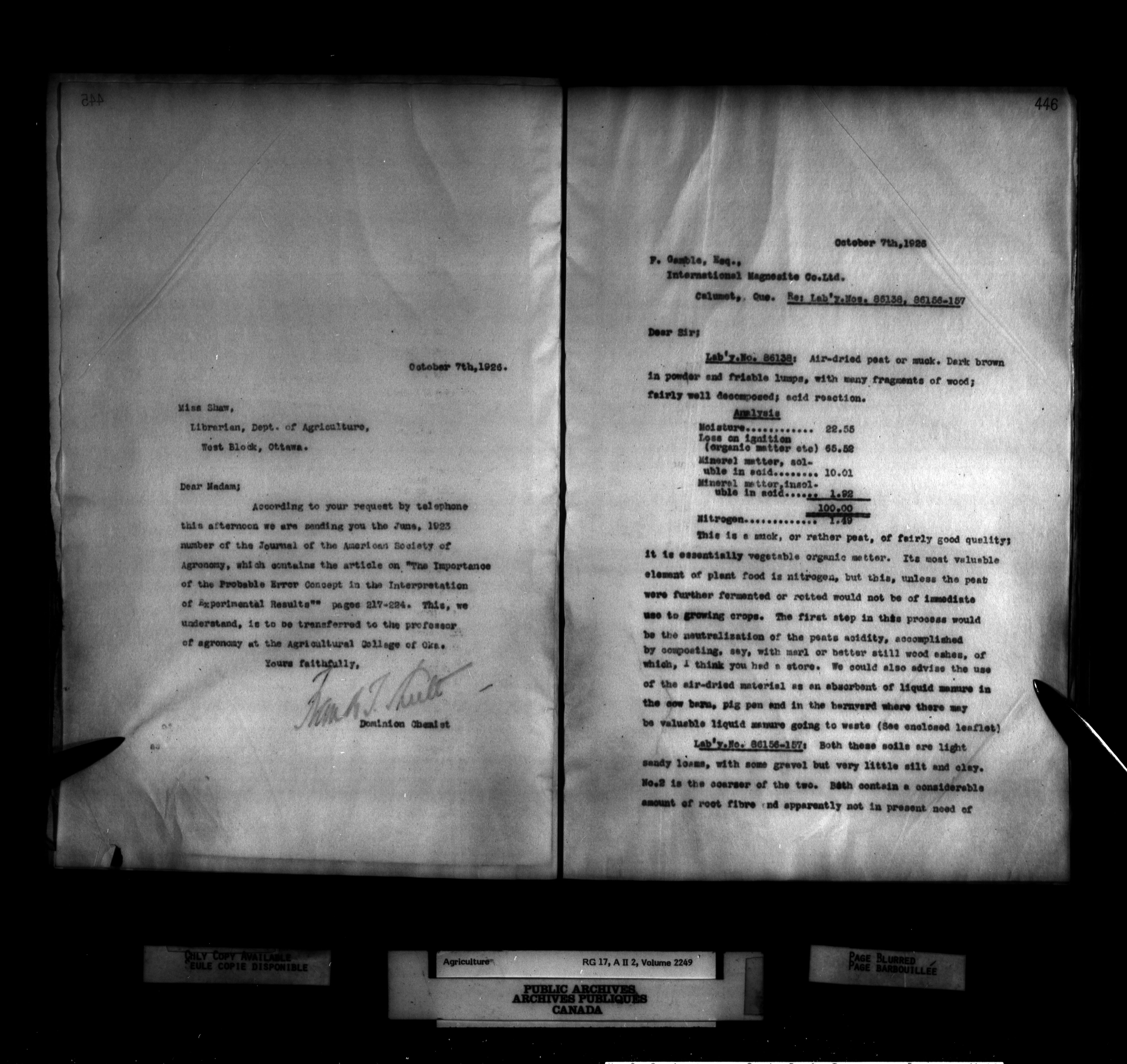 Department of Agriculture : Dominion Chemist, letterbooks - 1266