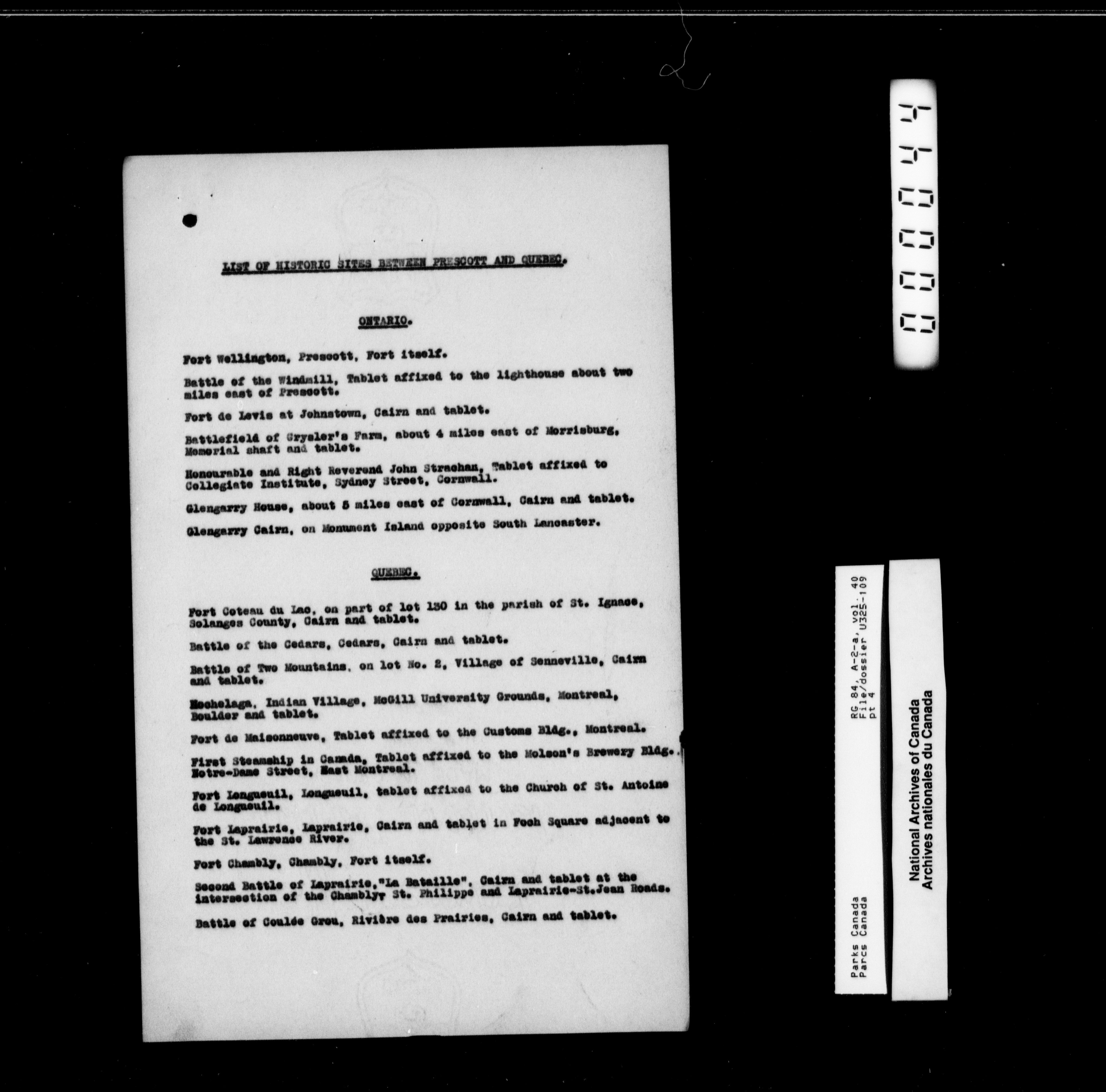 Department of Canadian Heritage, Canadian Parks Service : Park/subject classification system - 12664