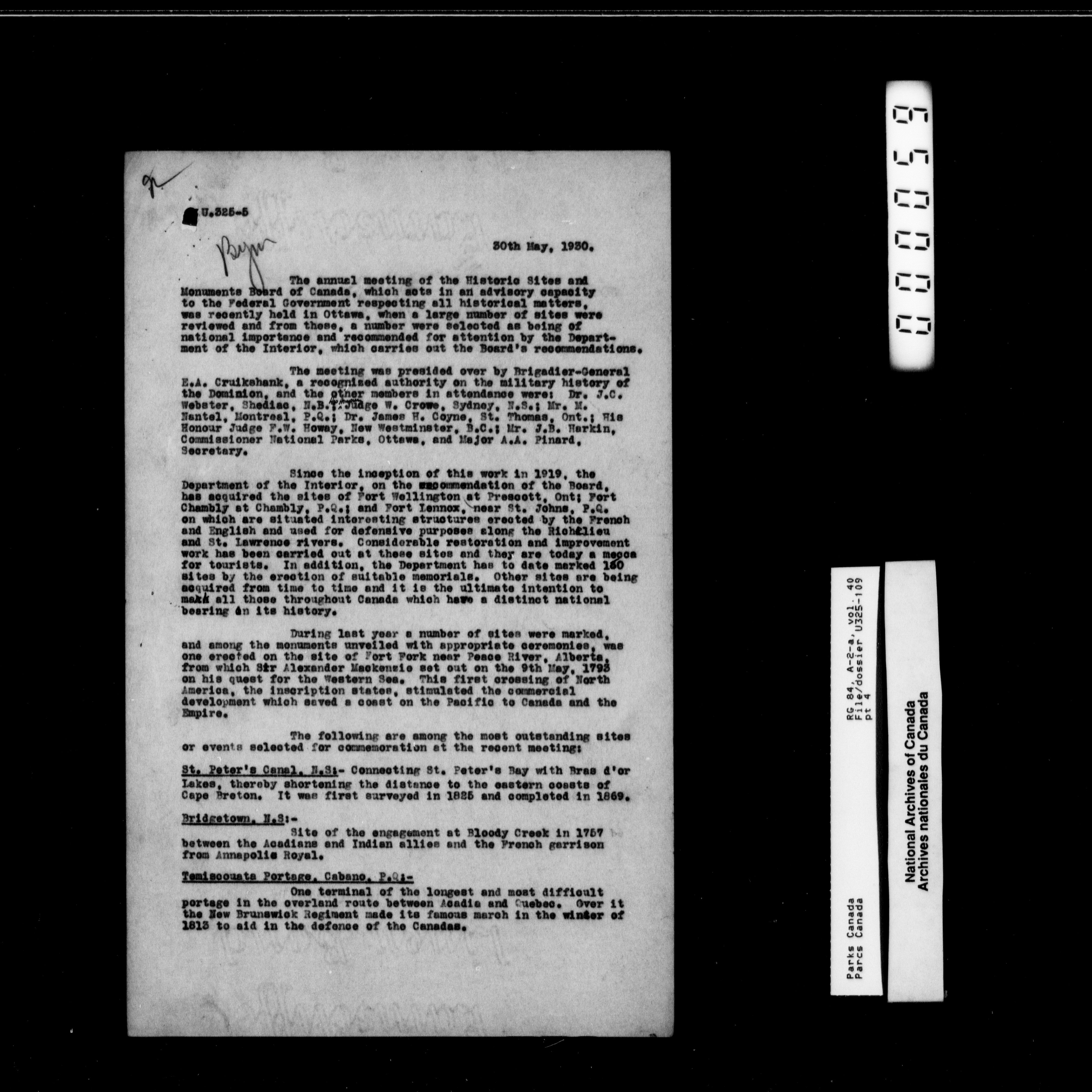 Department of Canadian Heritage, Canadian Parks Service : Park/subject classification system - 12664