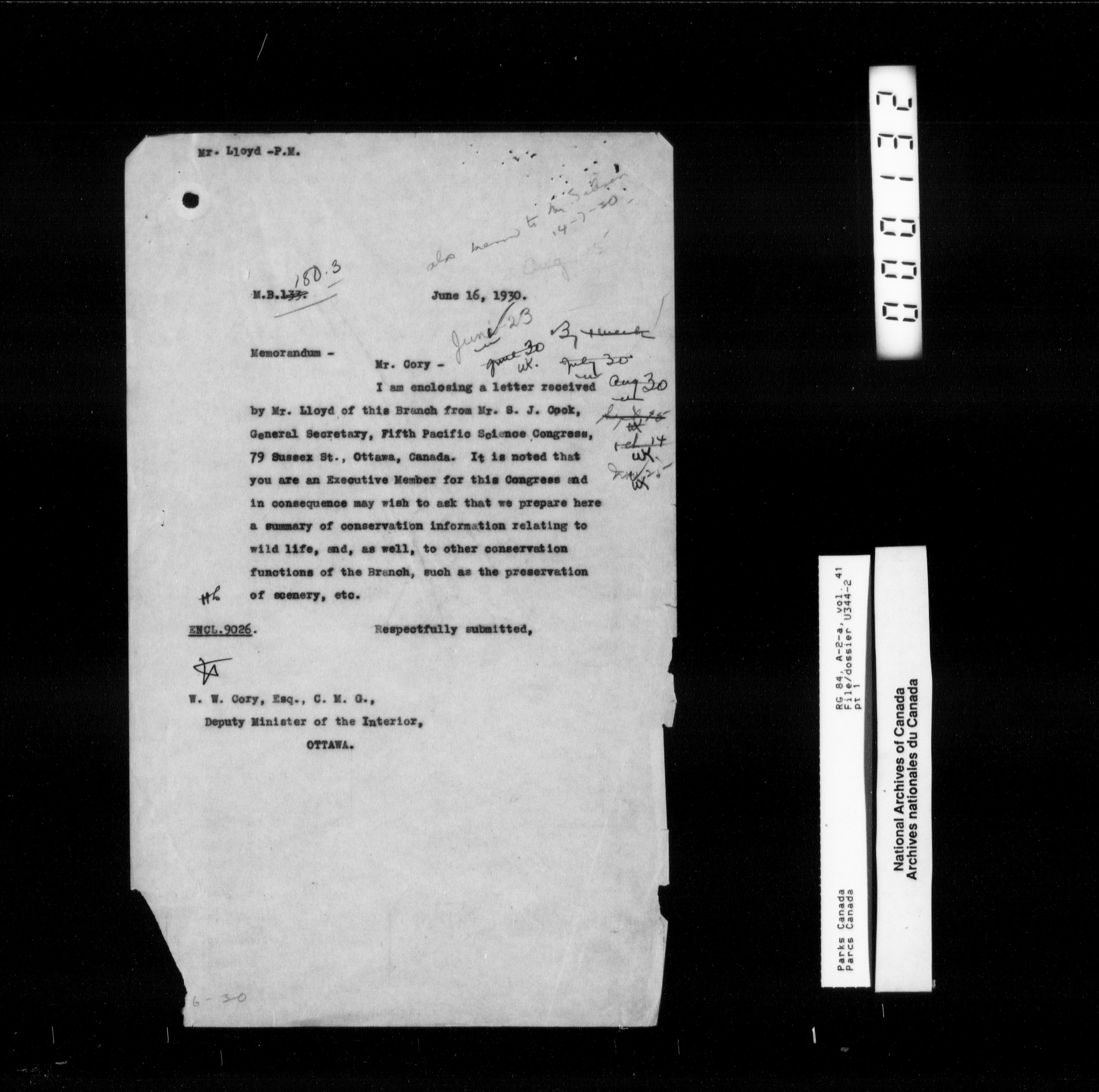 Department of Canadian Heritage, Canadian Parks Service : Park/subject classification system : T-12665