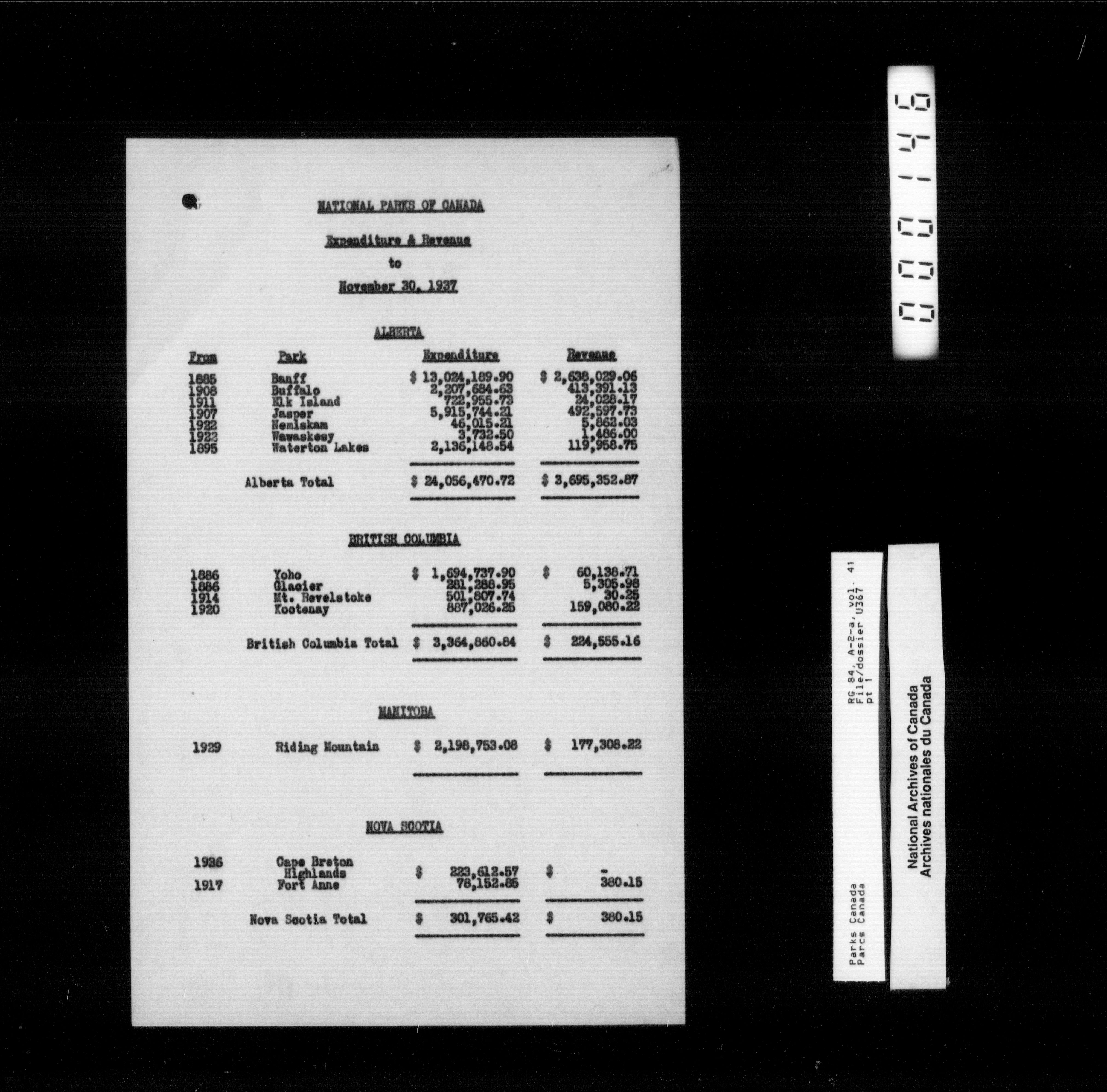 Department of Canadian Heritage, Canadian Parks Service : Park/subject classification system : T-12665
