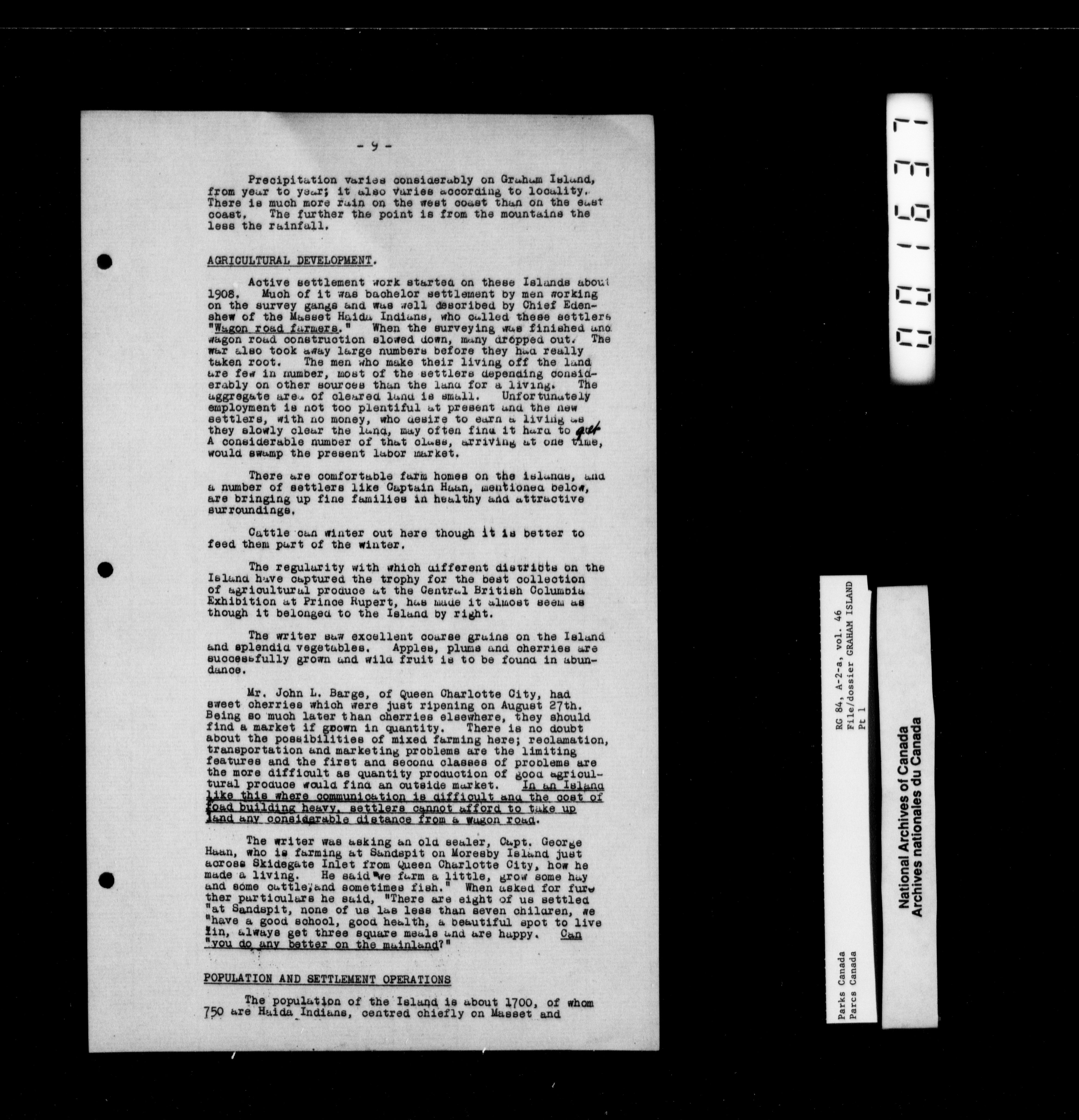 Department of Canadian Heritage, Canadian Parks Service : Park/subject classification system : T-12668