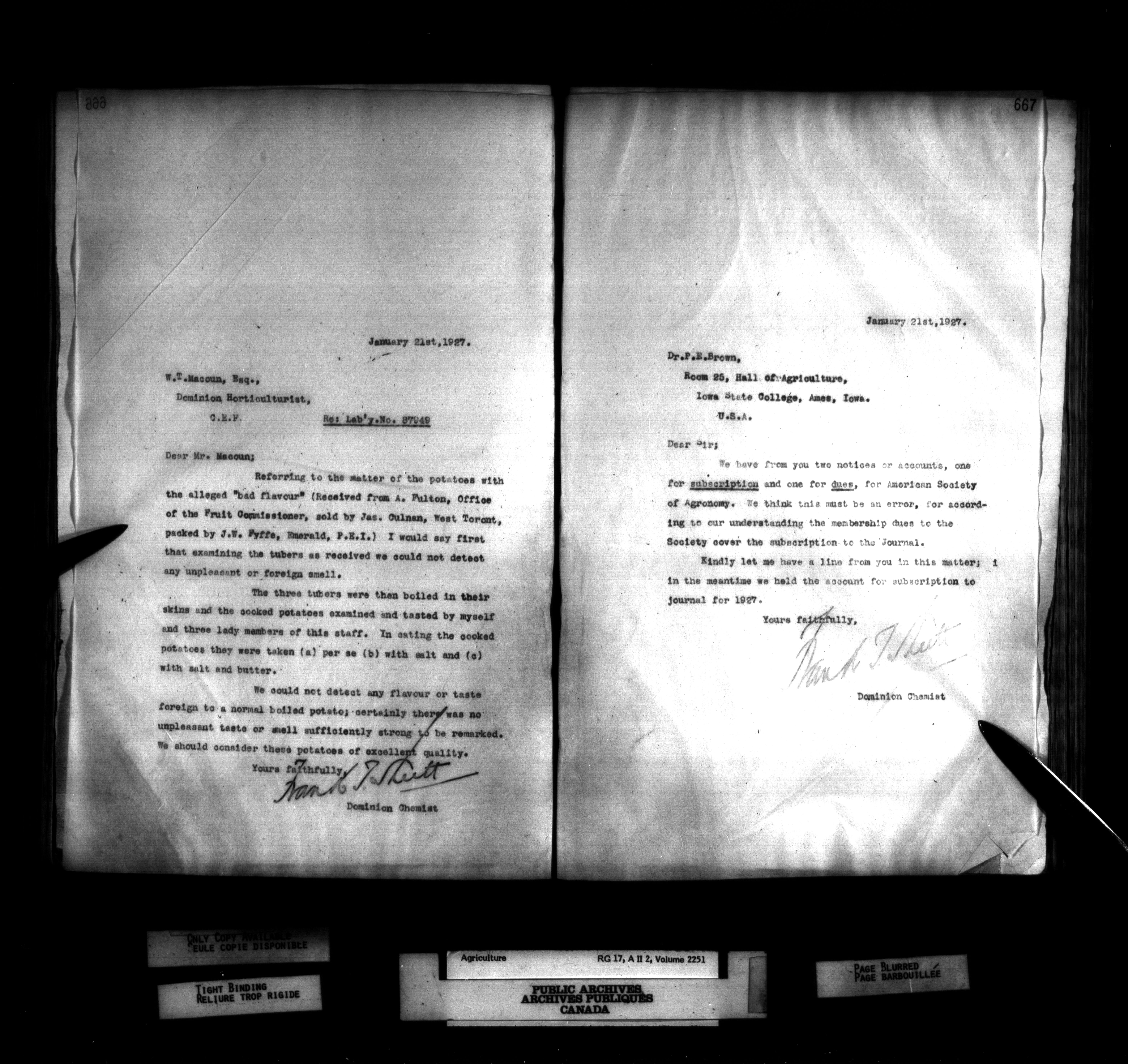 Department of Agriculture, Dominion Chemist : Letterbooks, 1889 - 1933 : T-1267