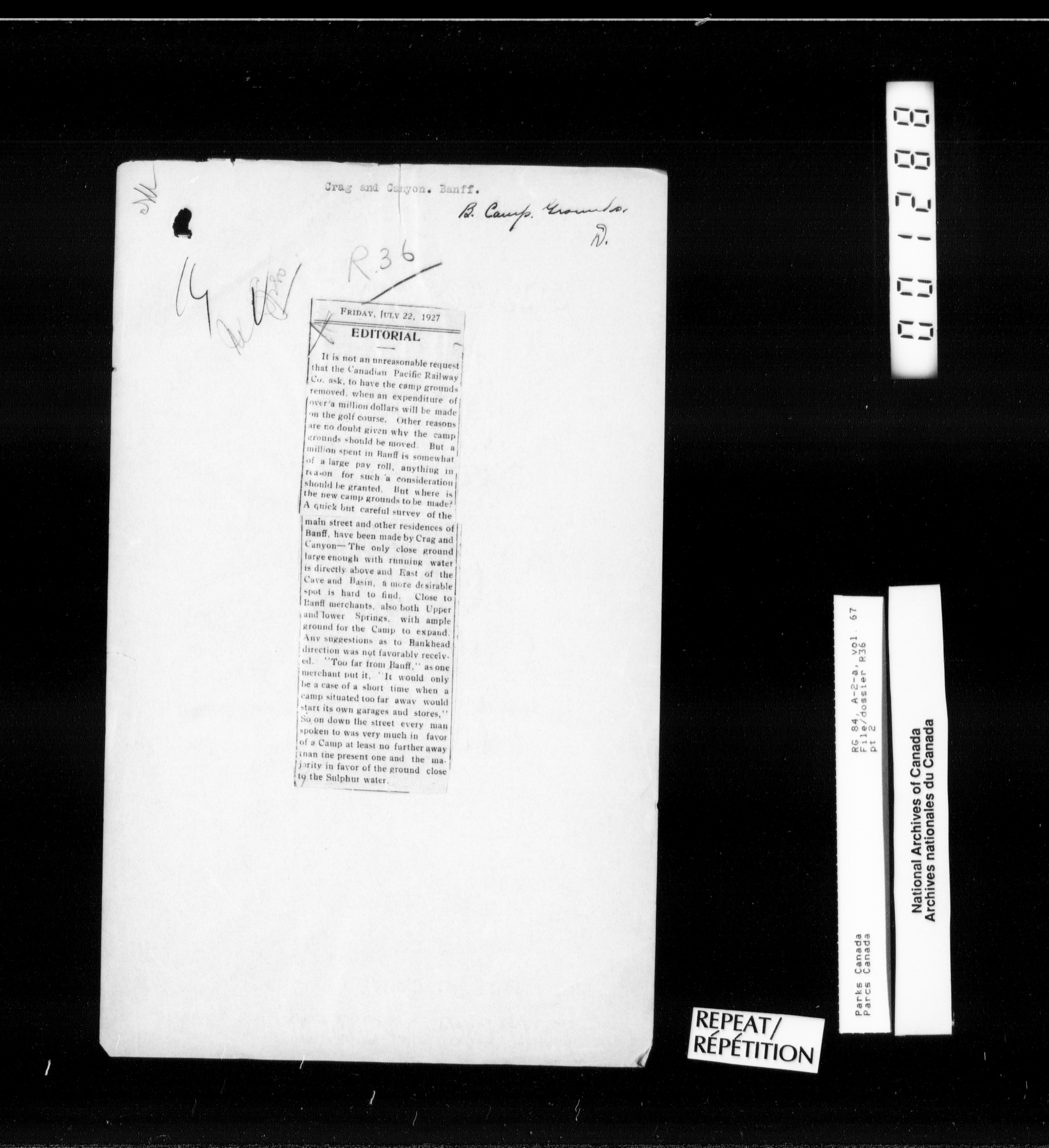 Department of Canadian Heritage, Canadian Parks Service : Park/subject classification system : T-12681