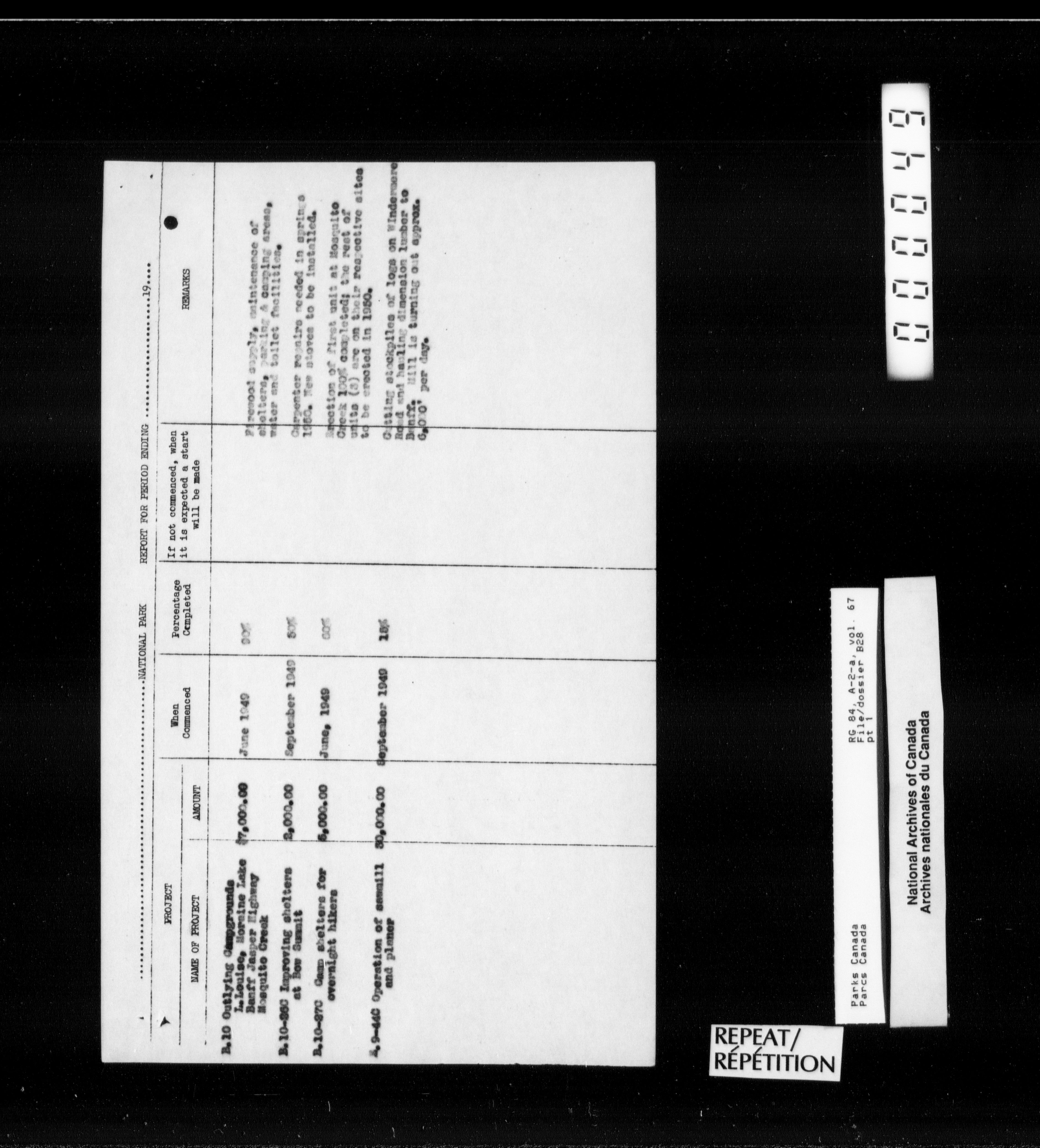 Department of Canadian Heritage, Canadian Parks Service : Park/subject classification system - 12681