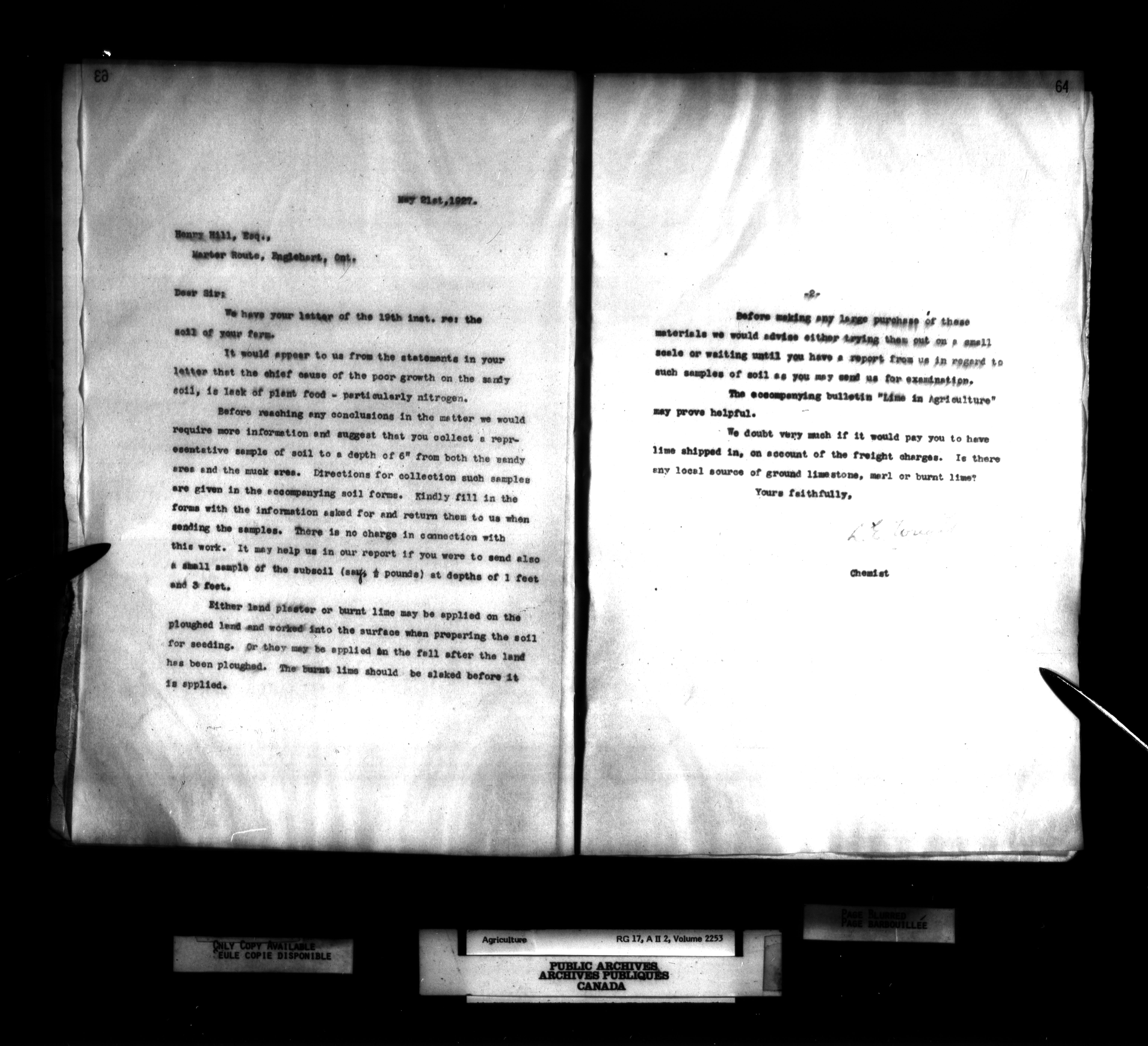 Department of Agriculture, Dominion Chemist : Letterbooks, 1889 - 1933 : T-1269