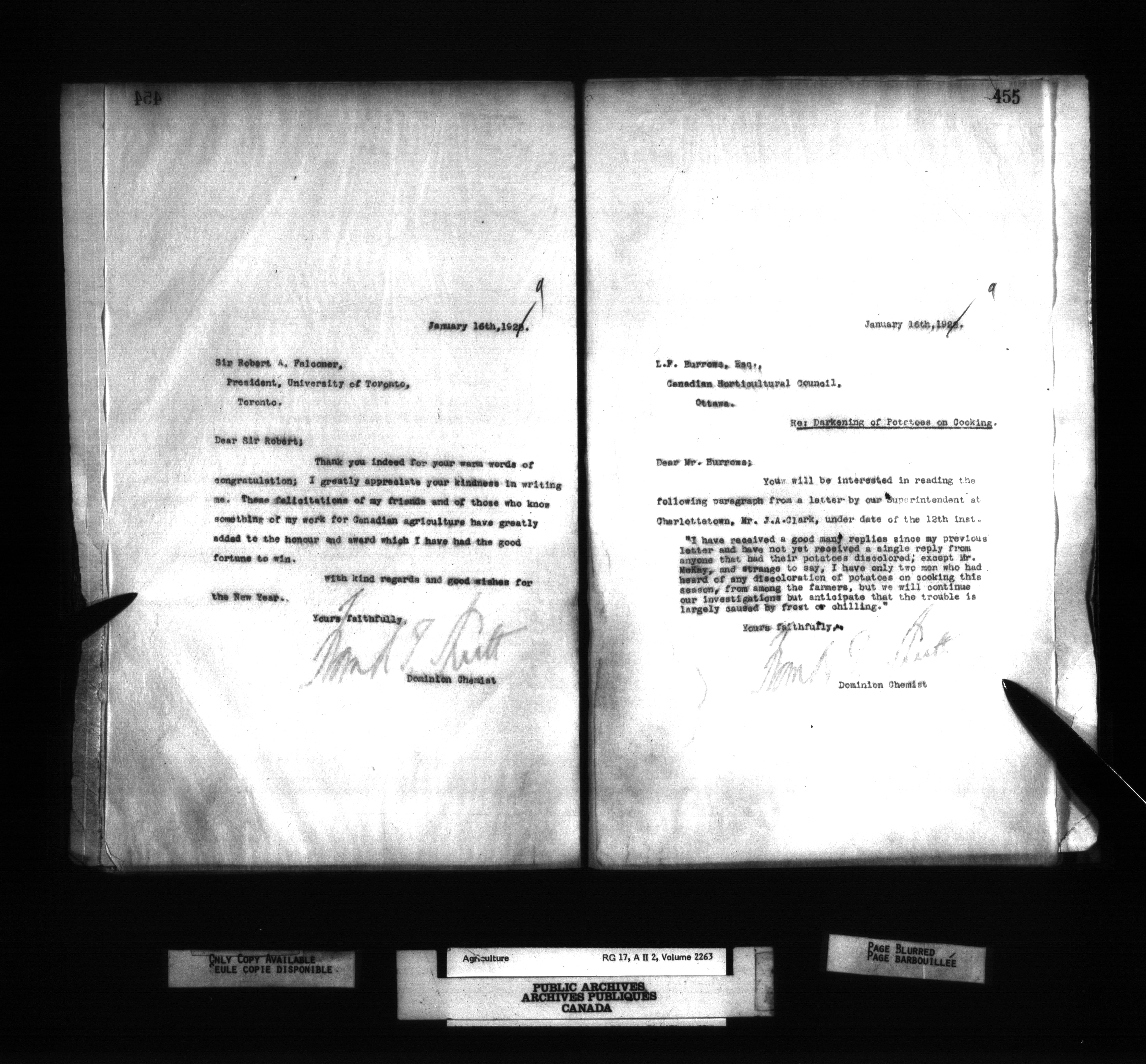 Department of Agriculture, Dominion Chemist : Letterbooks, 1889 - 1933 : T-1273