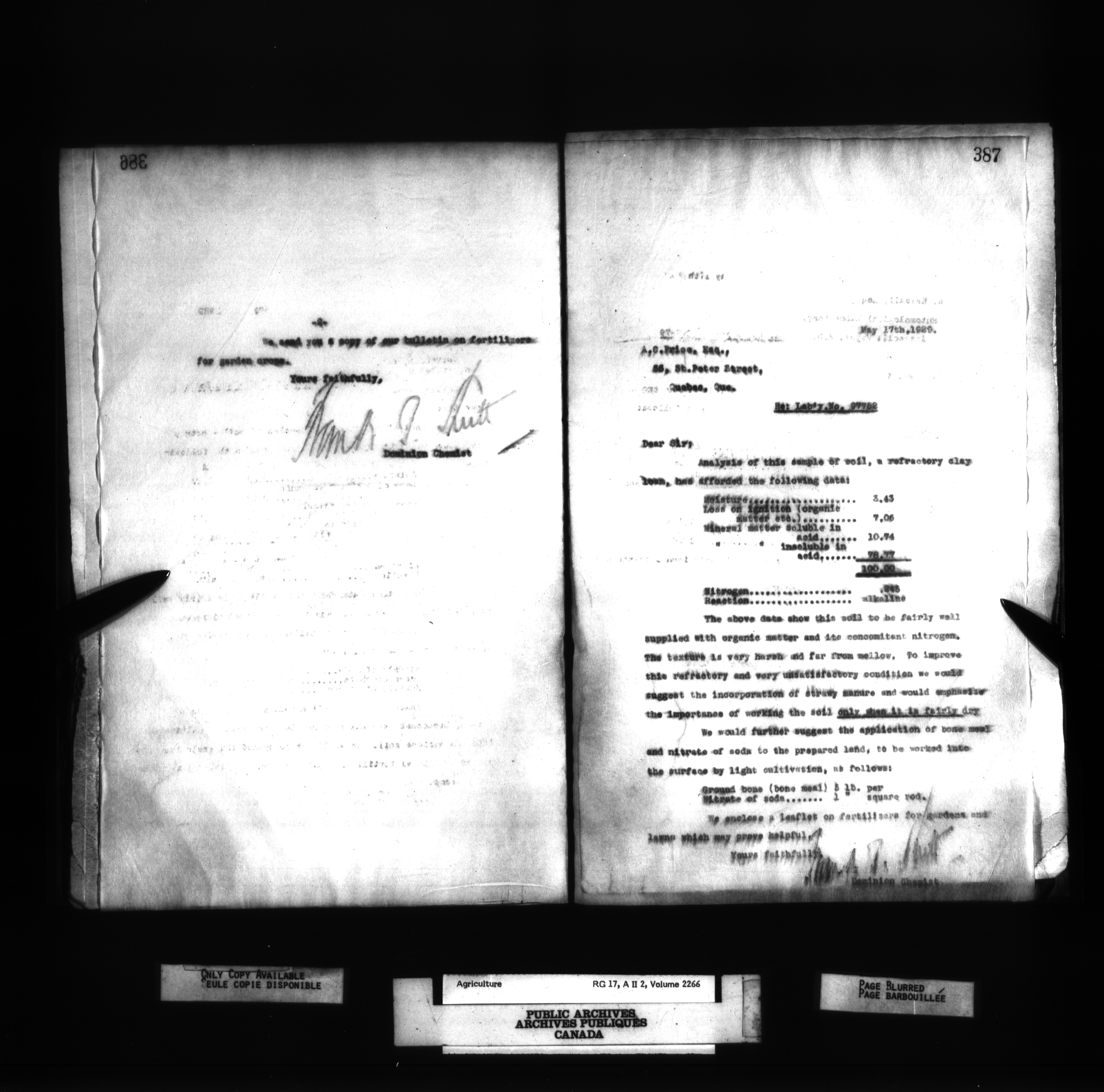Department of Agriculture, Dominion Chemist : Letterbooks, 1889 - 1933 : T-1275