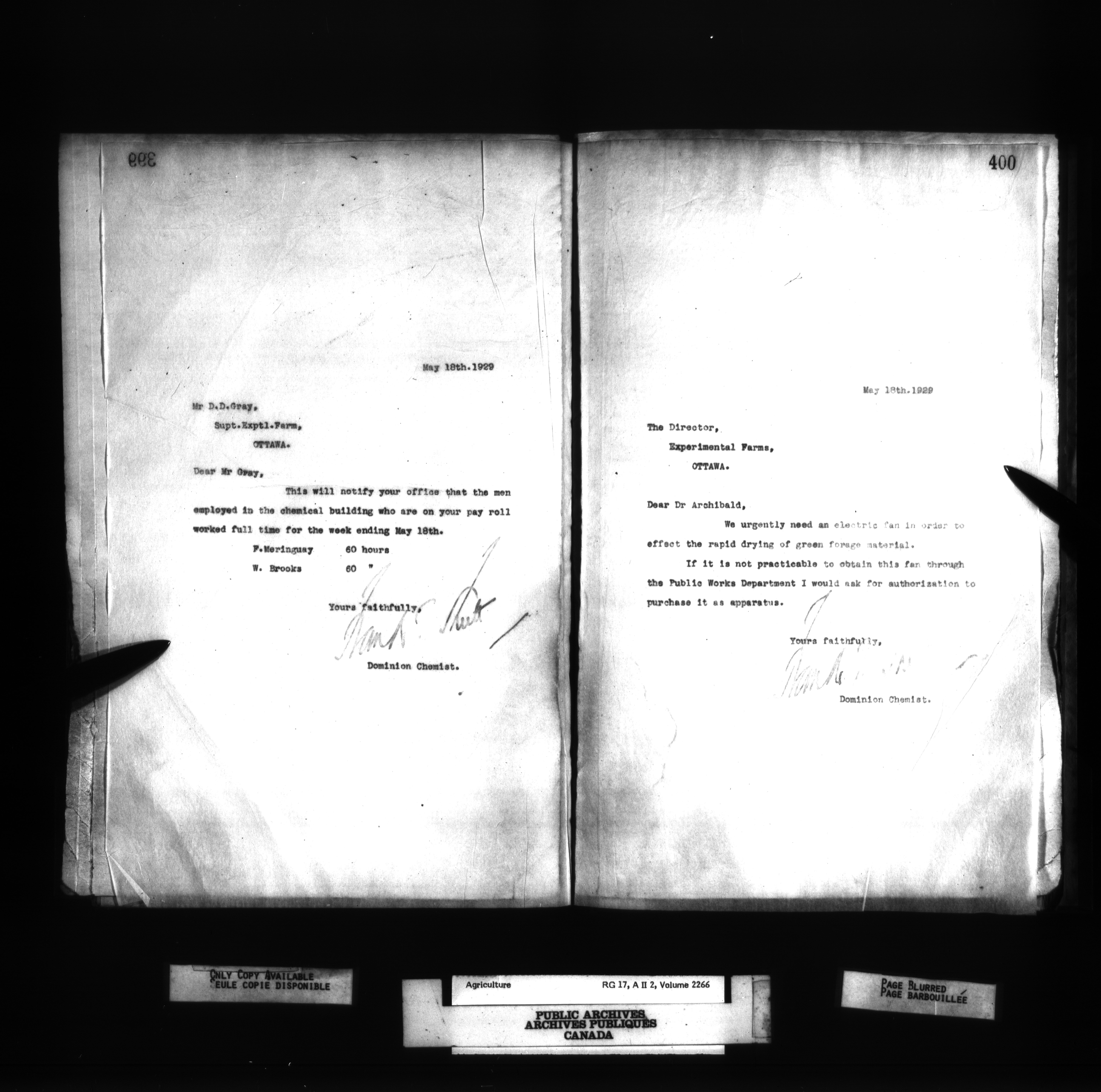 Department of Agriculture, Dominion Chemist : Letterbooks, 1889 - 1933 : T-1275