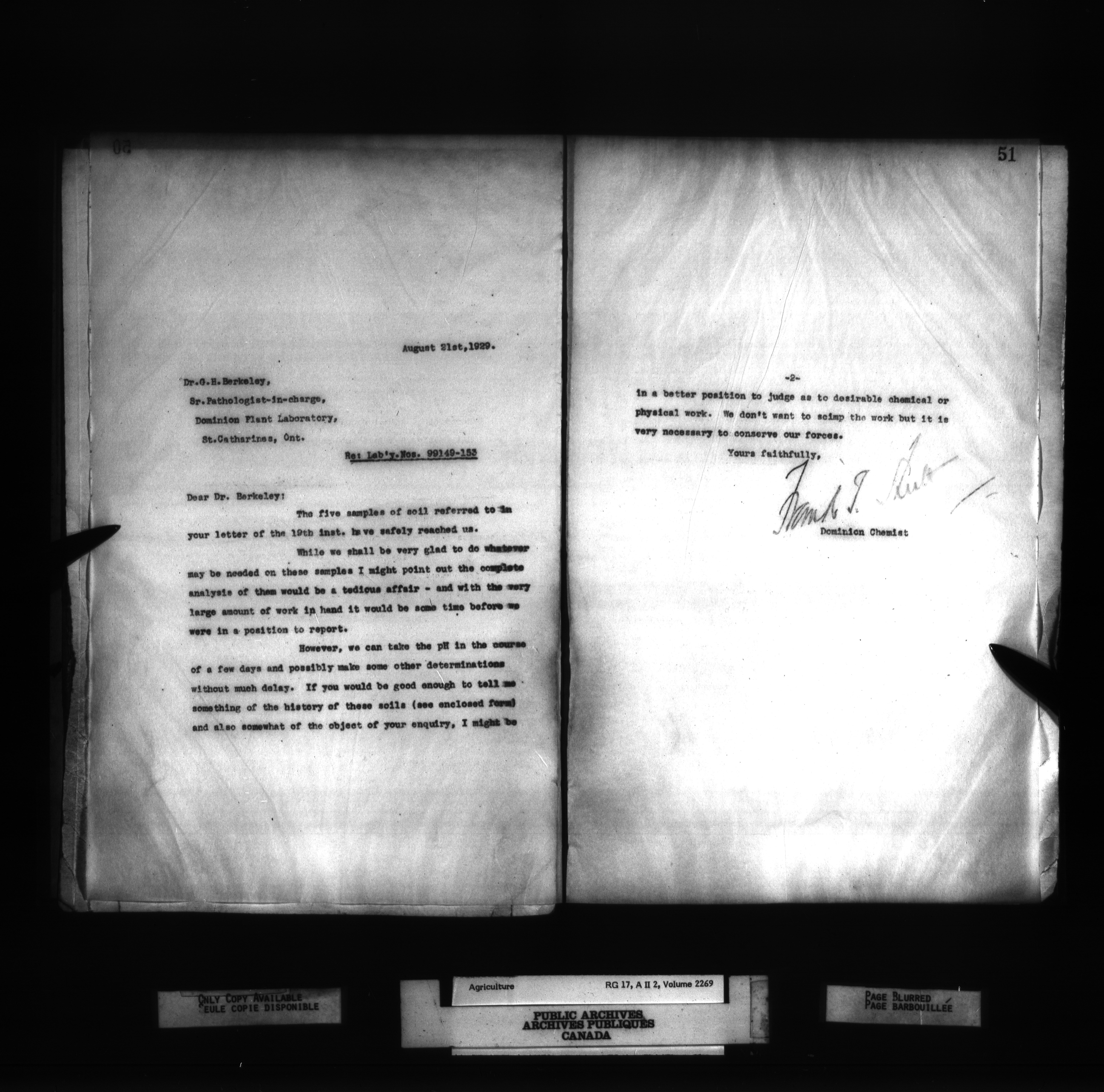 Department of Agriculture : Dominion Chemist, letterbooks - 1275