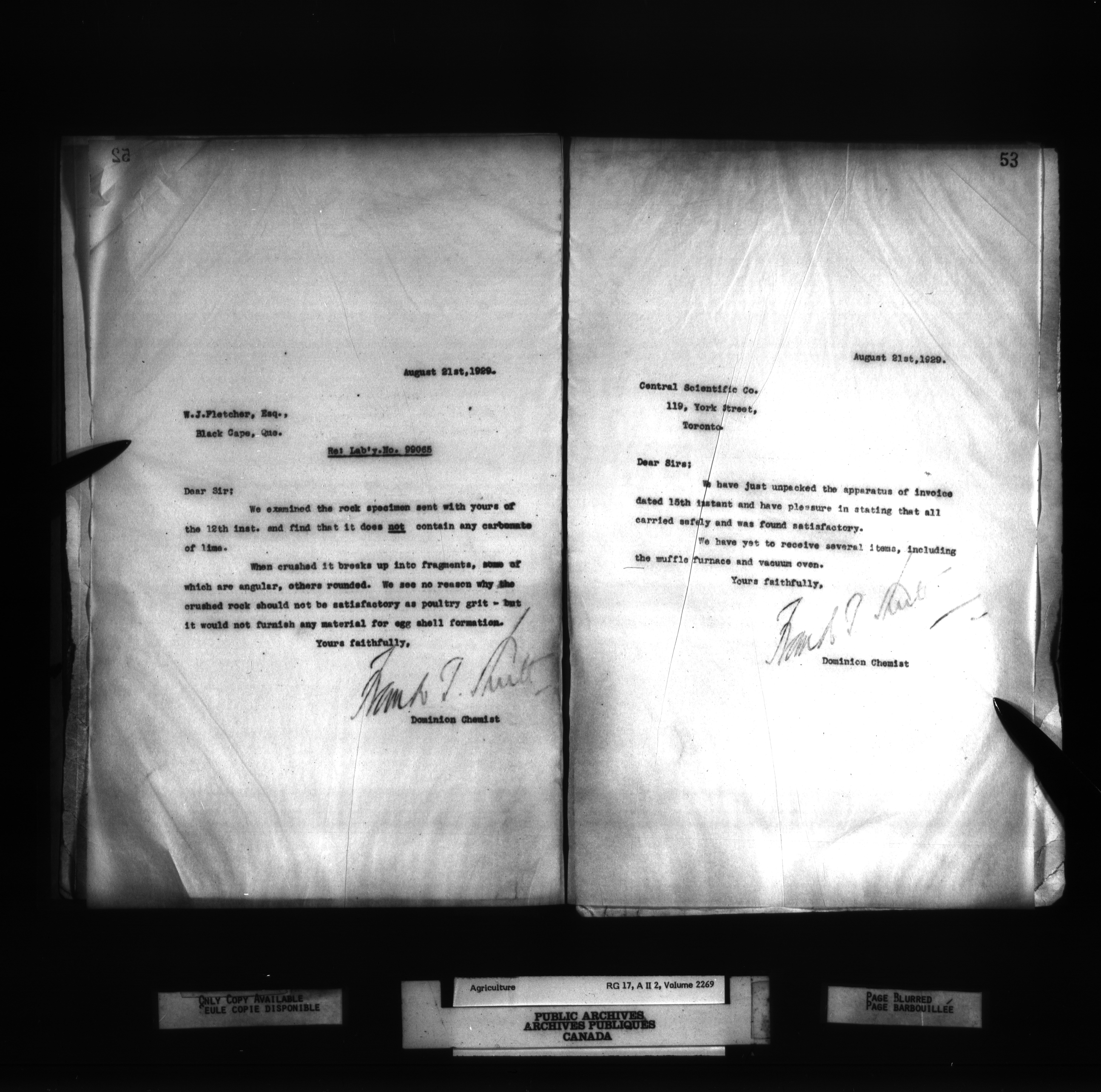 Department of Agriculture : Dominion Chemist, letterbooks - 1275