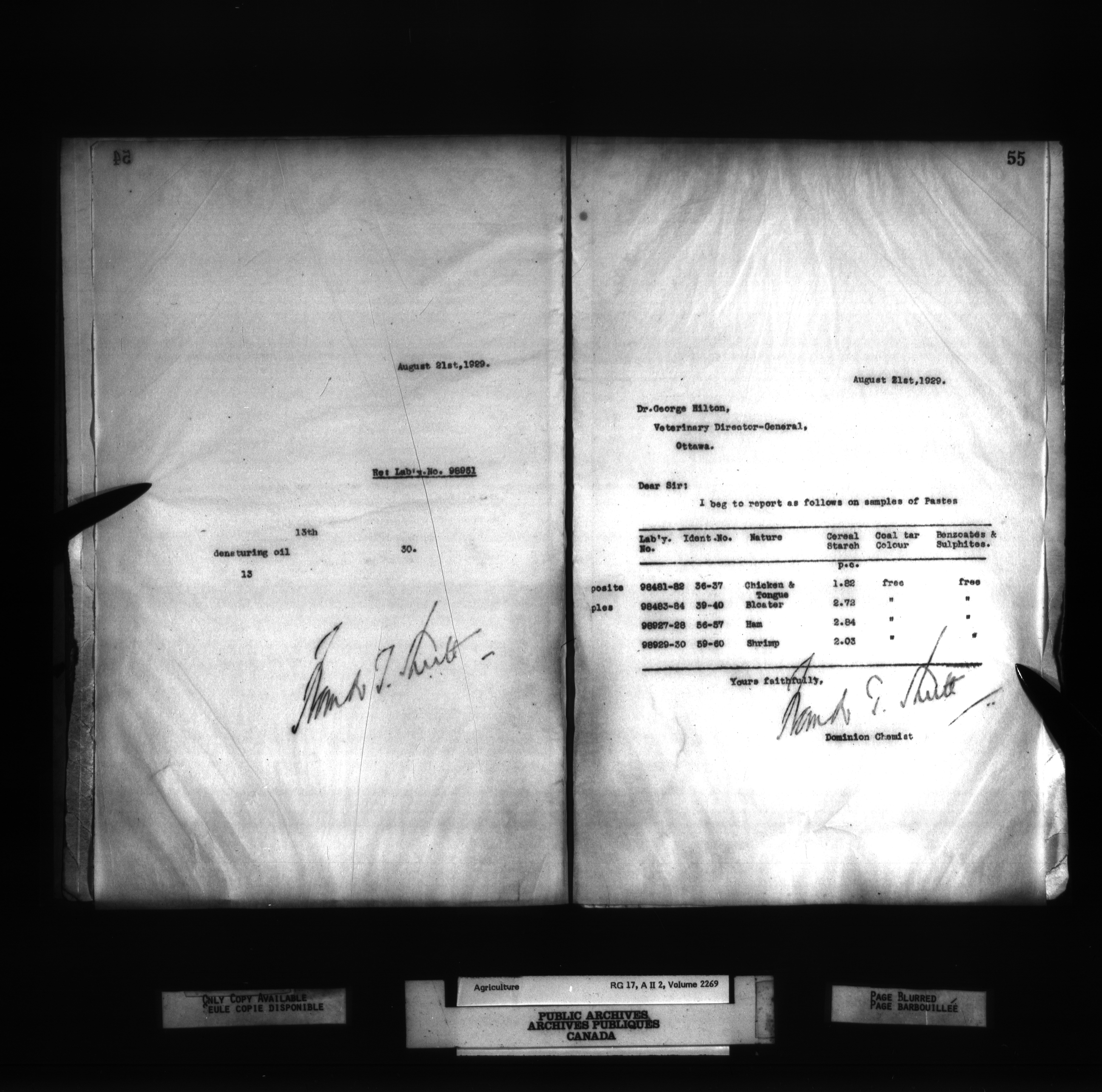 Department of Agriculture, Dominion Chemist : Letterbooks, 1889 - 1933 : T-1275