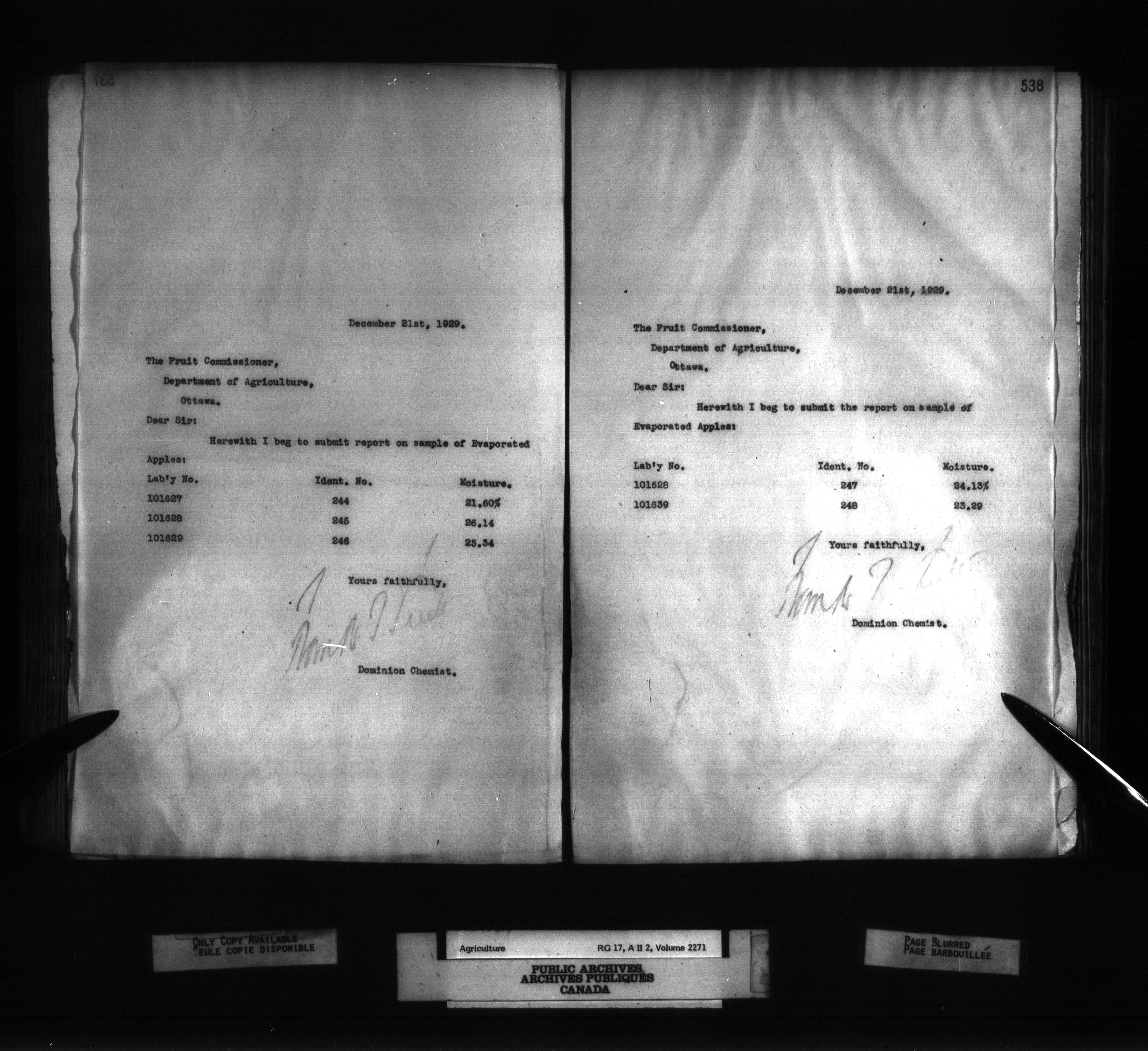 Department of Agriculture, Dominion Chemist : Letterbooks, 1889 - 1933 : T-1277