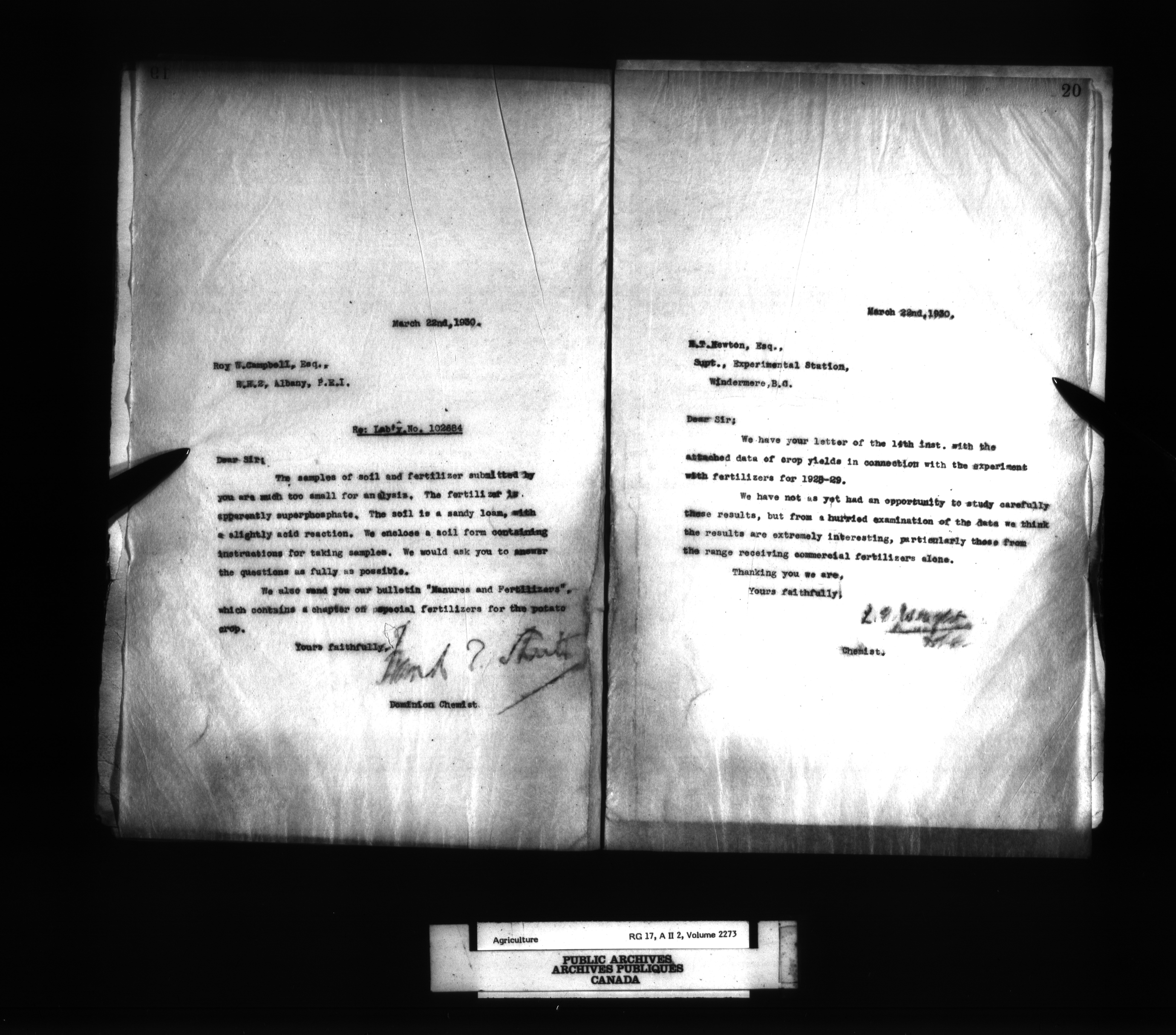 Department of Agriculture, Dominion Chemist : Letterbooks, 1889 - 1933 : T-1278