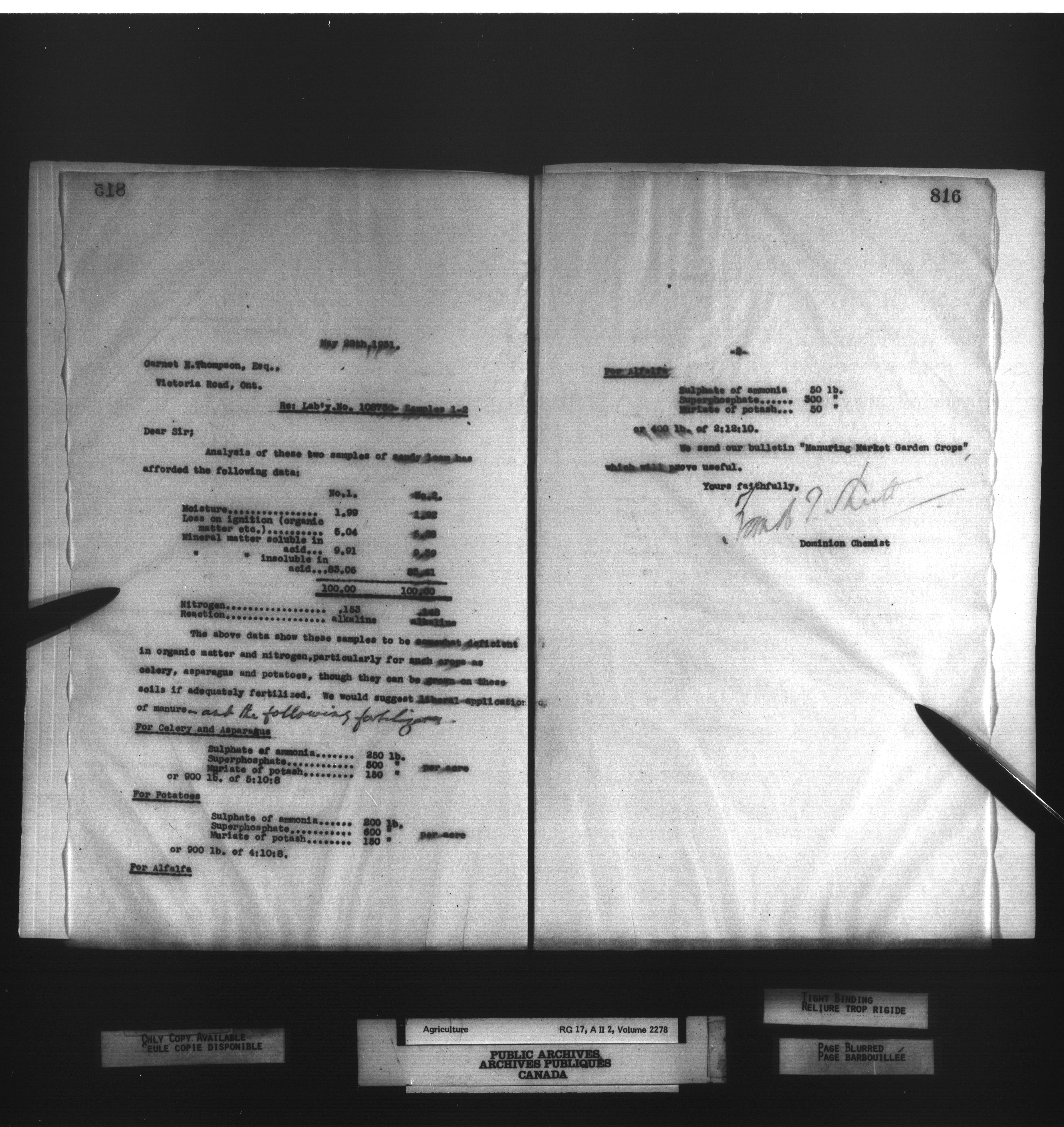 Department of Agriculture, Dominion Chemist : Letterbooks, 1889 - 1933 : T-1282