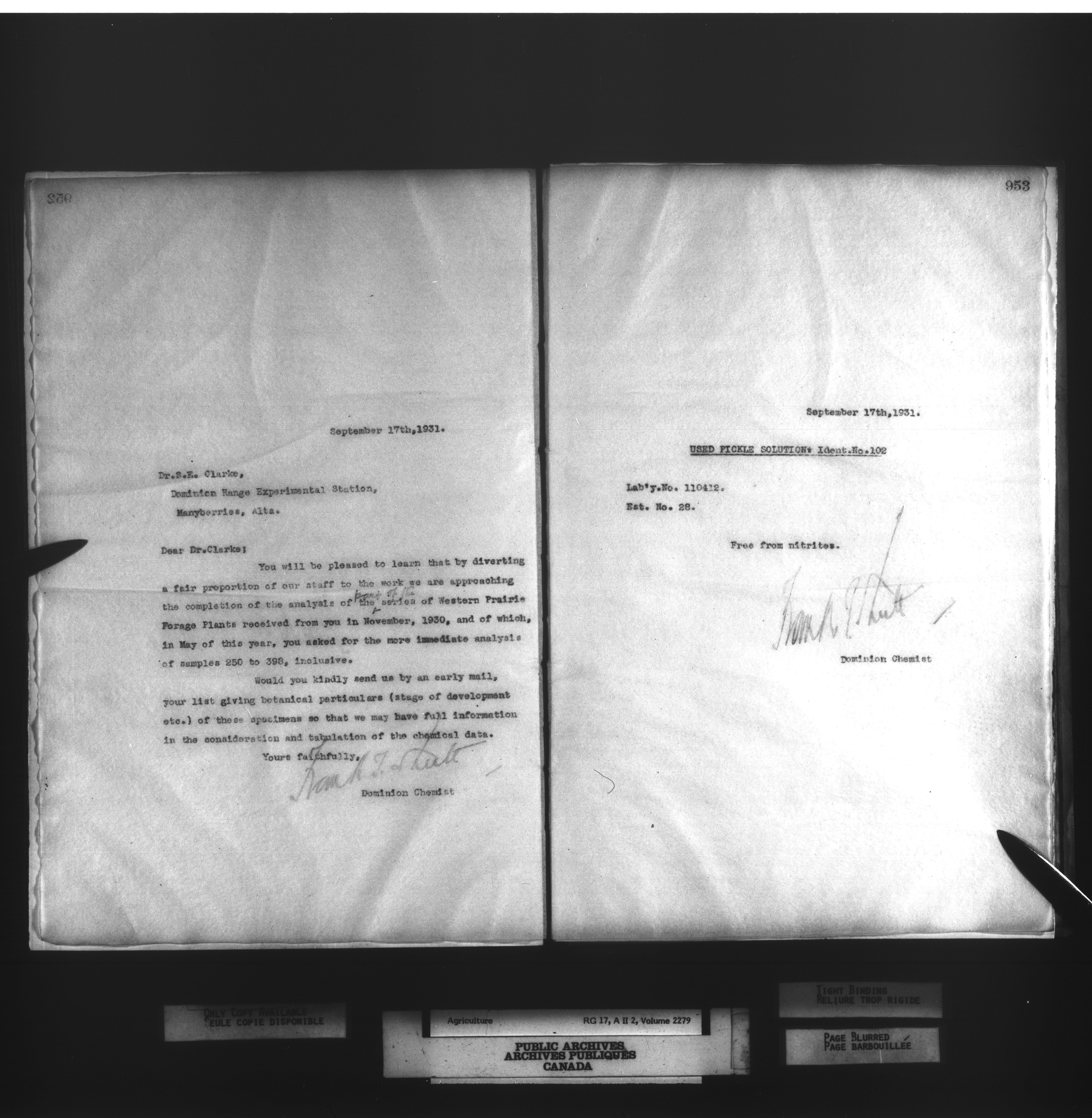 Department of Agriculture, Dominion Chemist : Letterbooks, 1889 - 1933 : T-1282