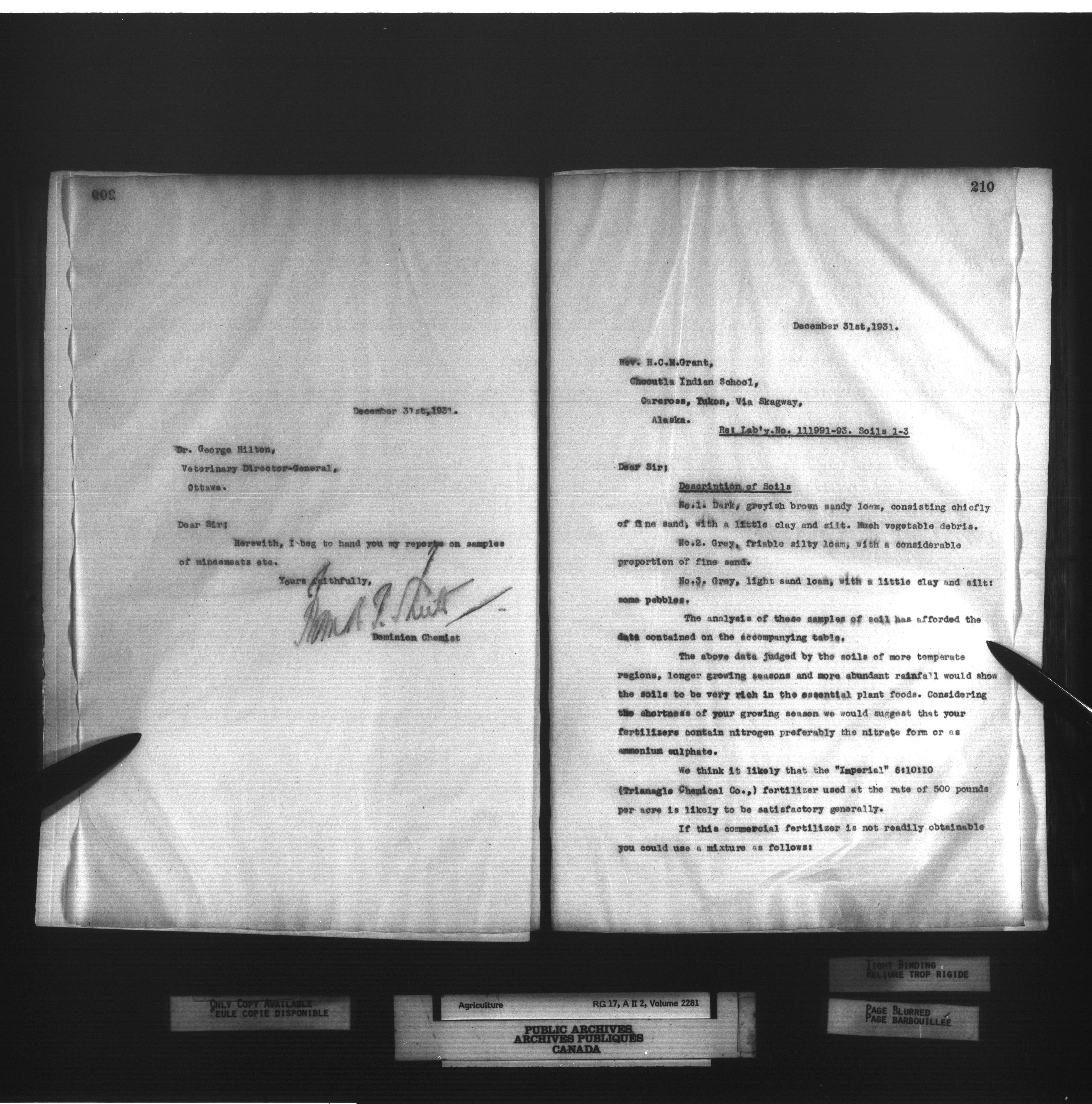 Department of Agriculture, Dominion Chemist : Letterbooks, 1889 - 1933 : T-1283