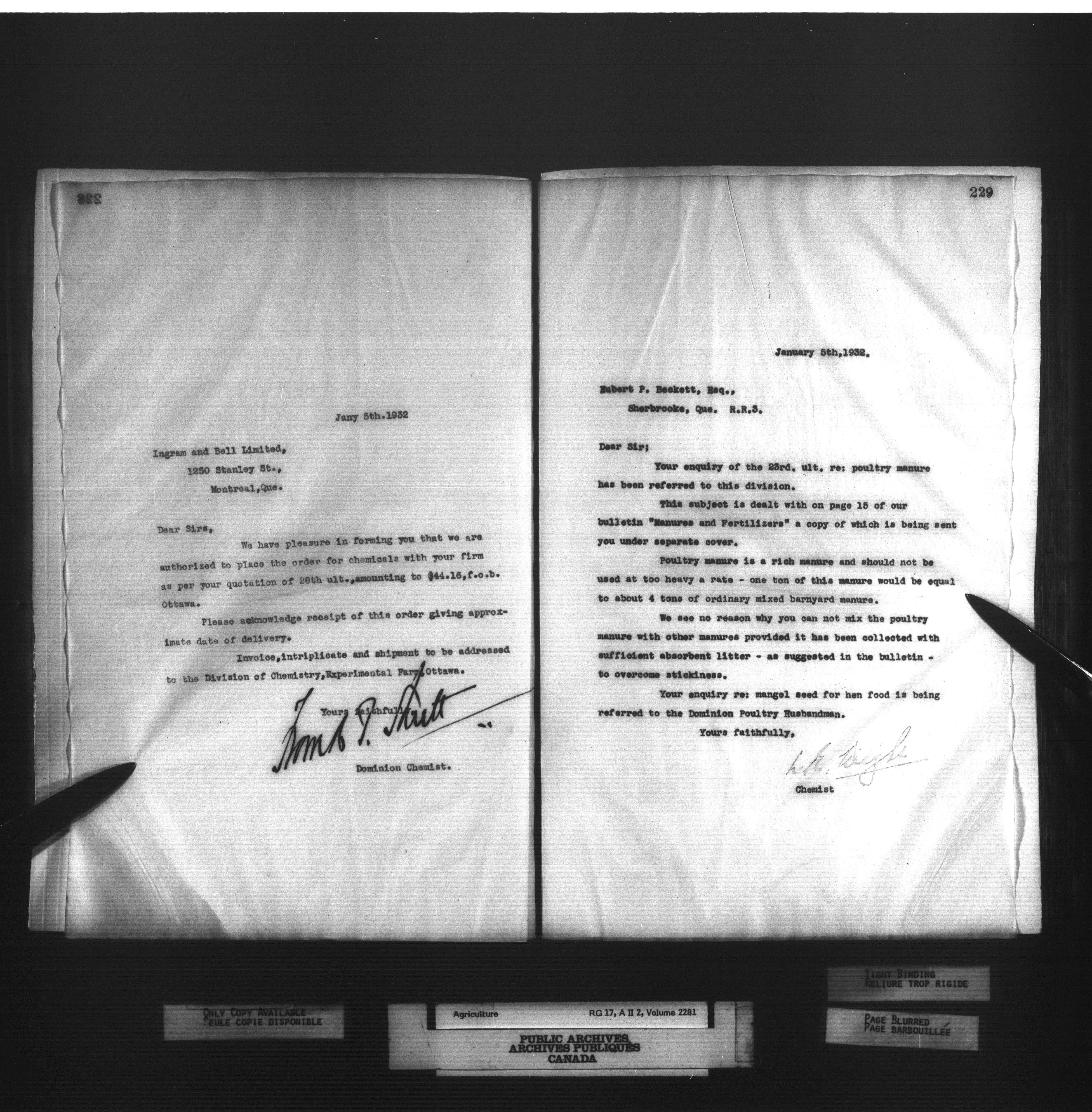 Department of Agriculture, Dominion Chemist : Letterbooks, 1889 - 1933 : T-1283