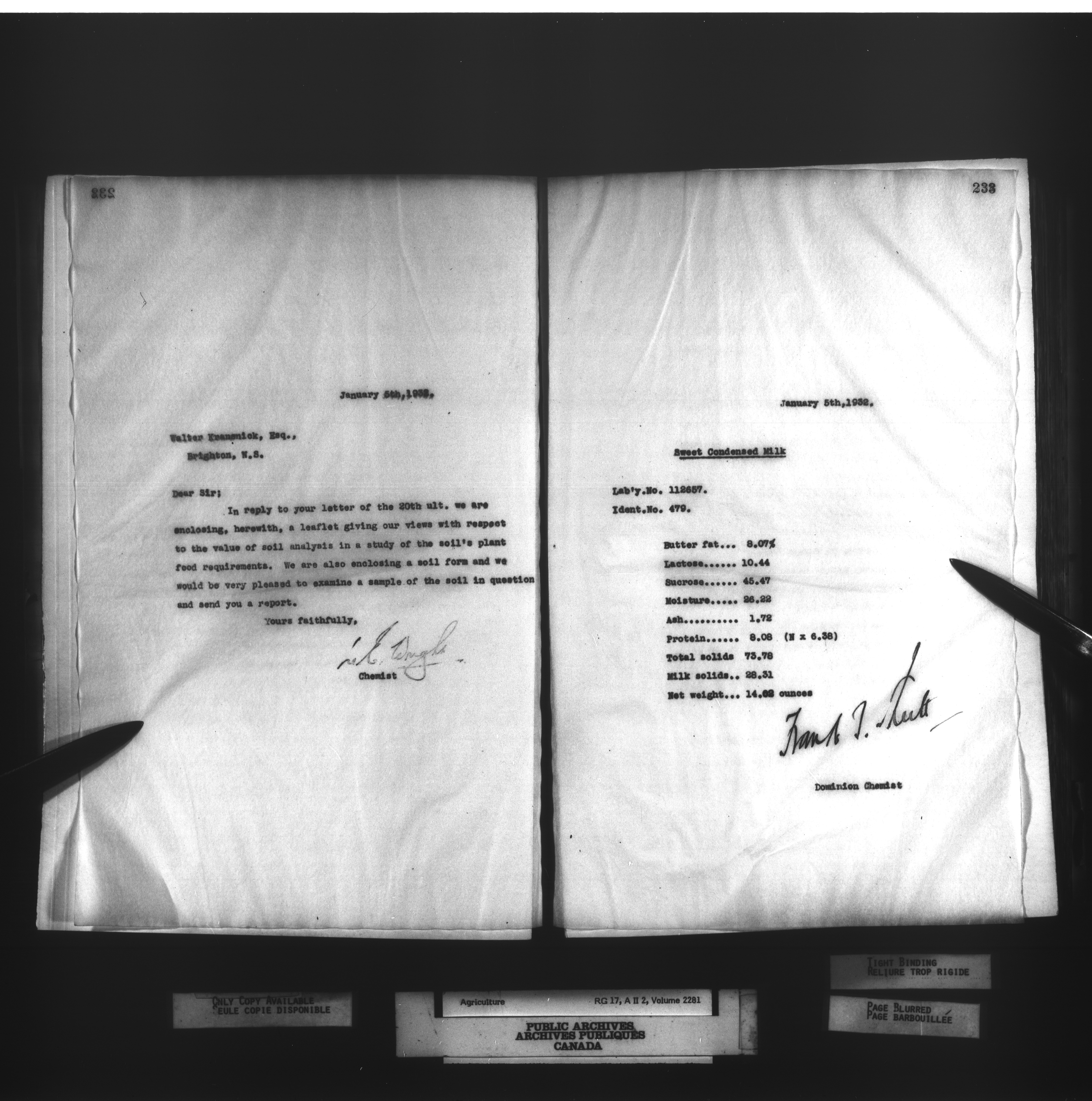 Department of Agriculture, Dominion Chemist : Letterbooks, 1889 - 1933 : T-1283
