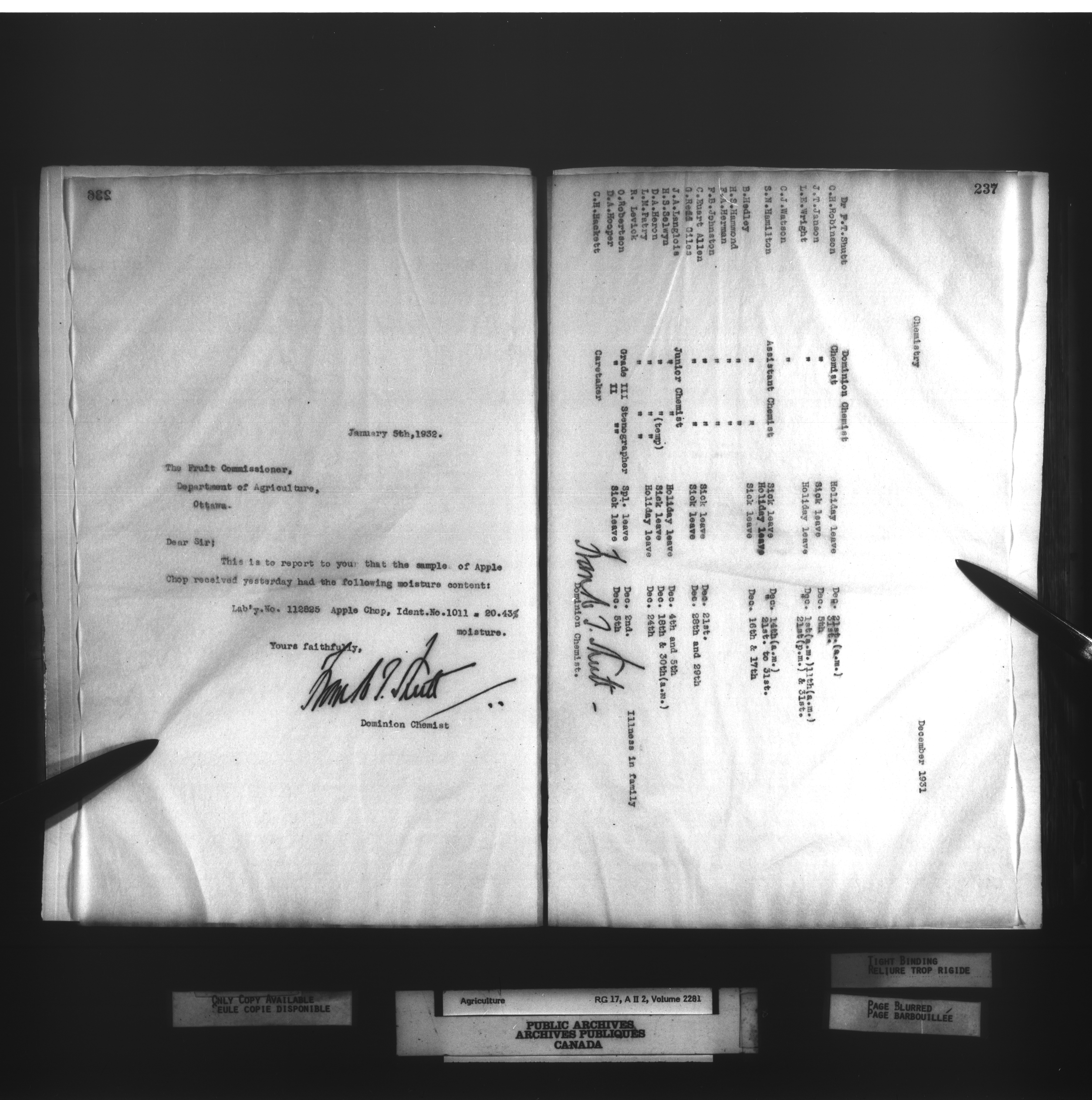 Department of Agriculture, Dominion Chemist : Letterbooks, 1889 - 1933 : T-1283