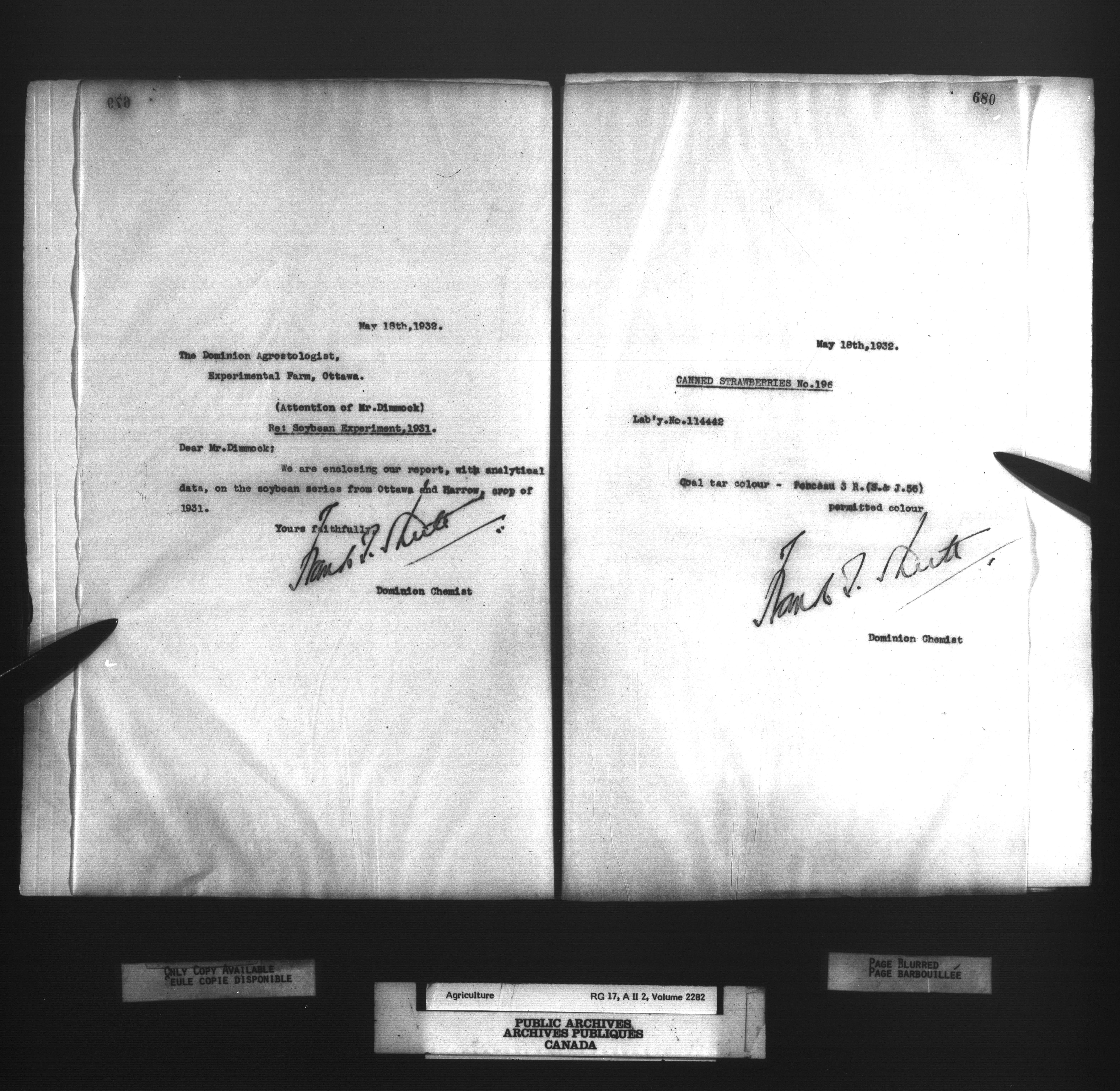 Department of Agriculture, Dominion Chemist : Letterbooks, 1889 - 1933 : T-1285