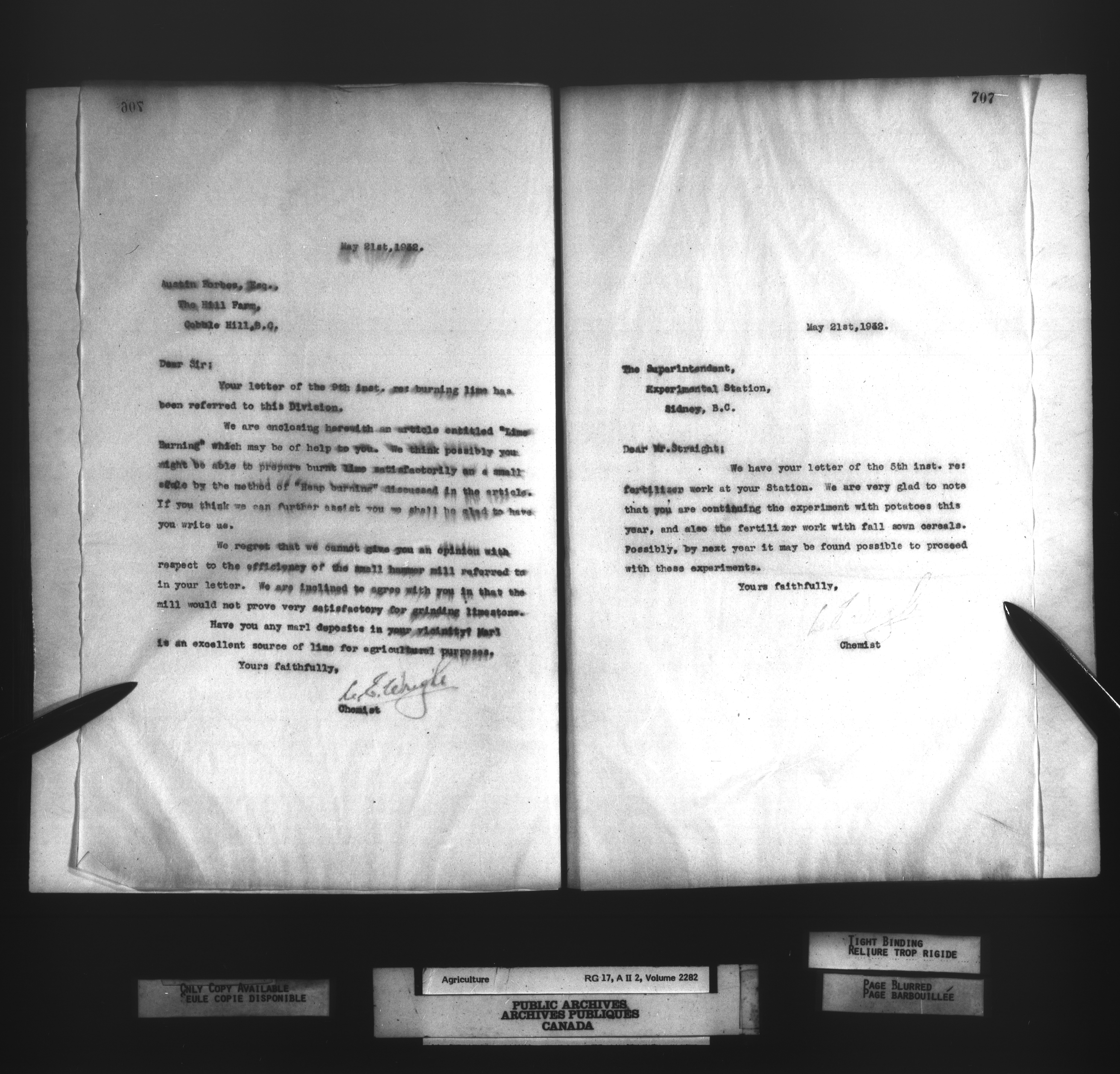 Department of Agriculture, Dominion Chemist : Letterbooks, 1889 - 1933 : T-1285