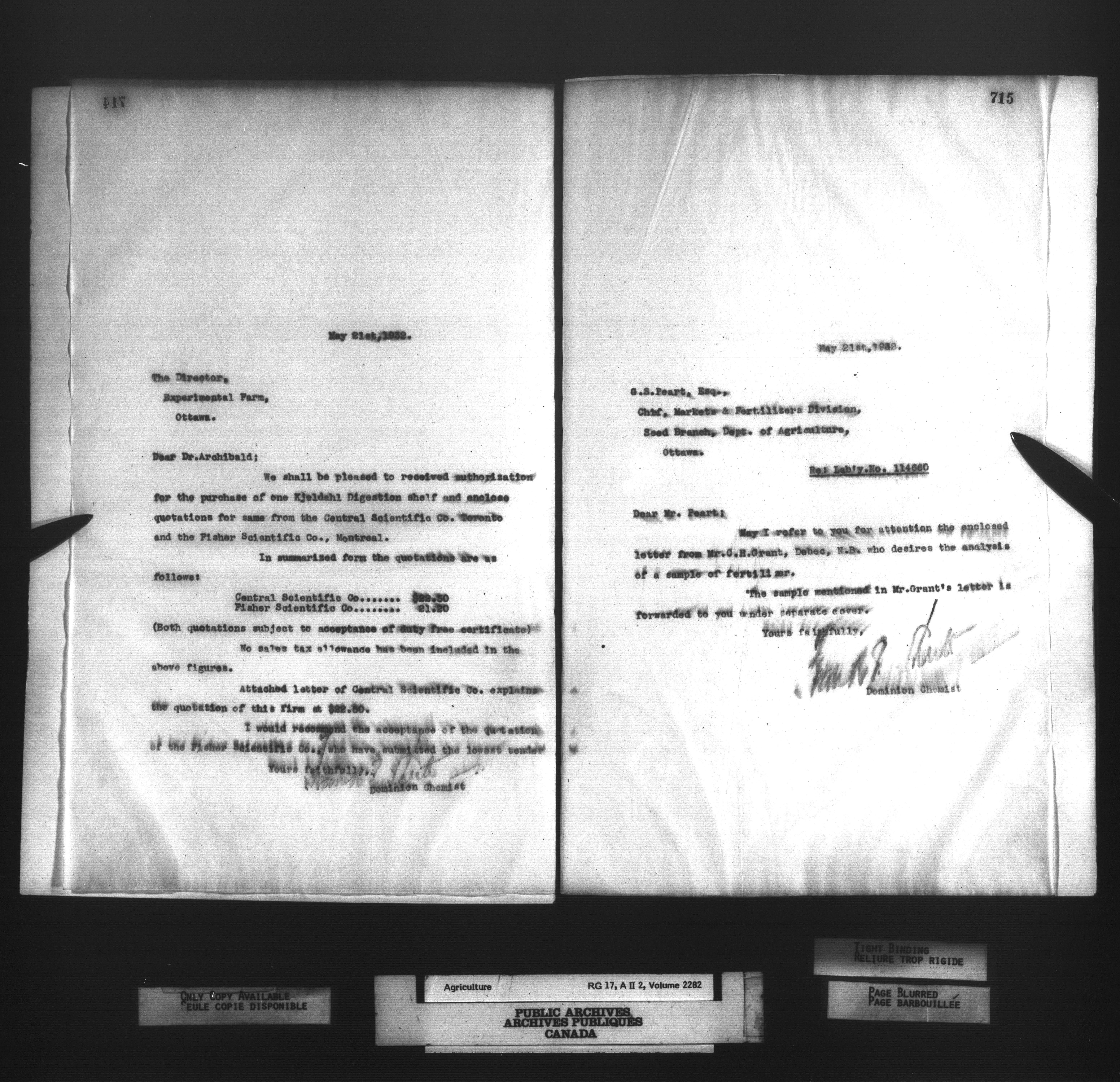 Department of Agriculture, Dominion Chemist : Letterbooks, 1889 - 1933 : T-1285