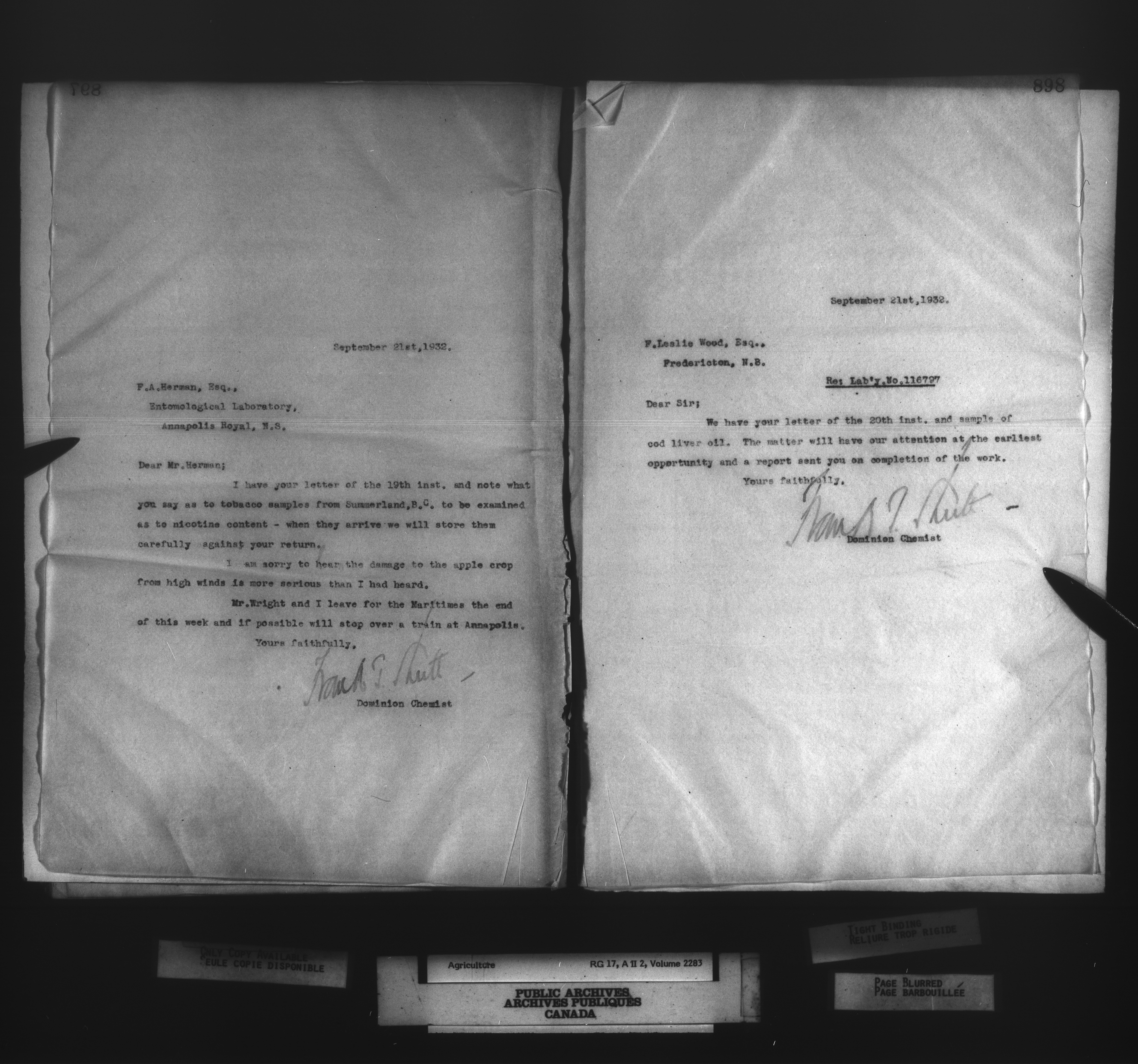 Department of Agriculture, Dominion Chemist : Letterbooks, 1889 - 1933 : T-1285