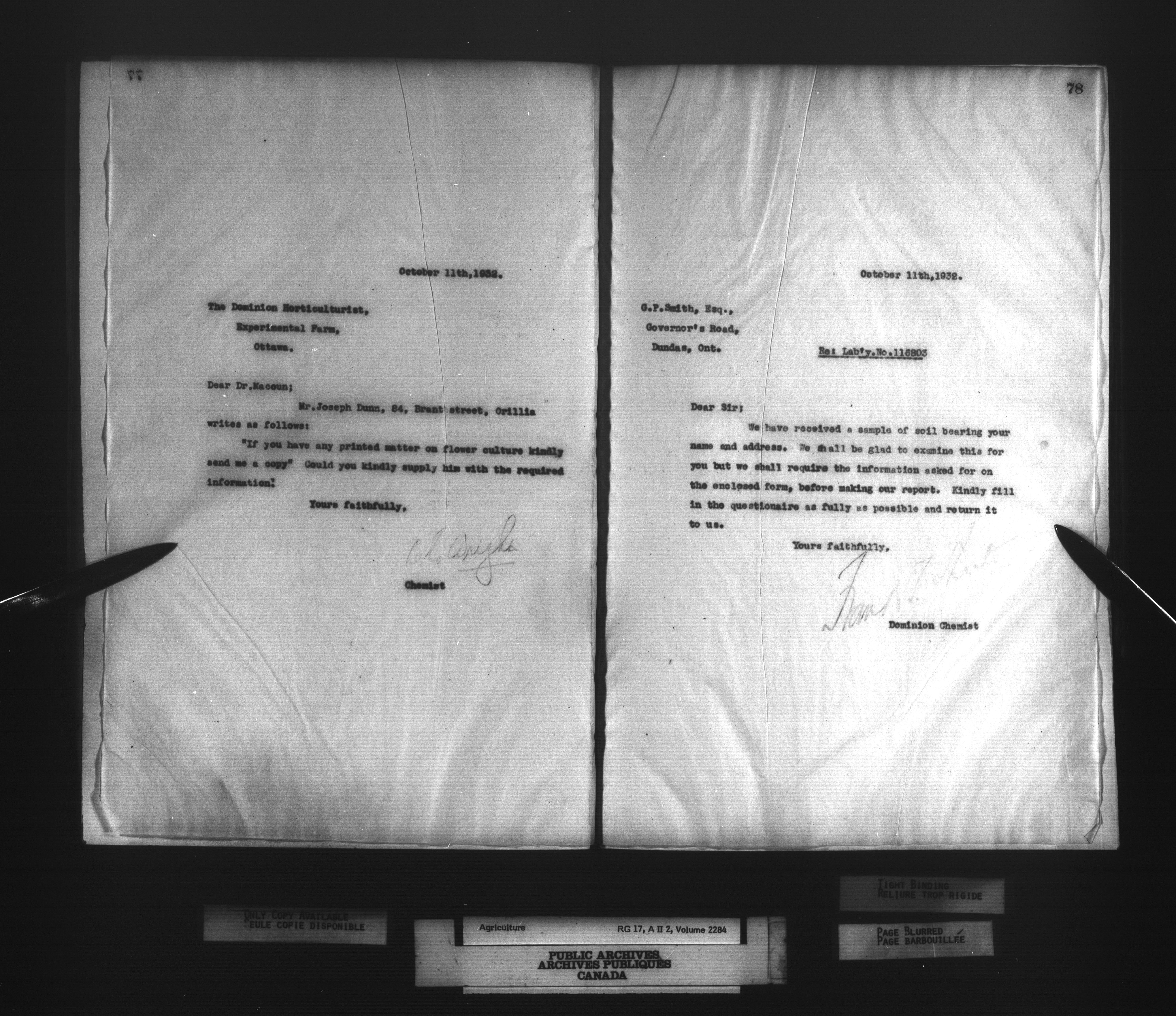 Department of Agriculture : Dominion Chemist, letterbooks - 1286