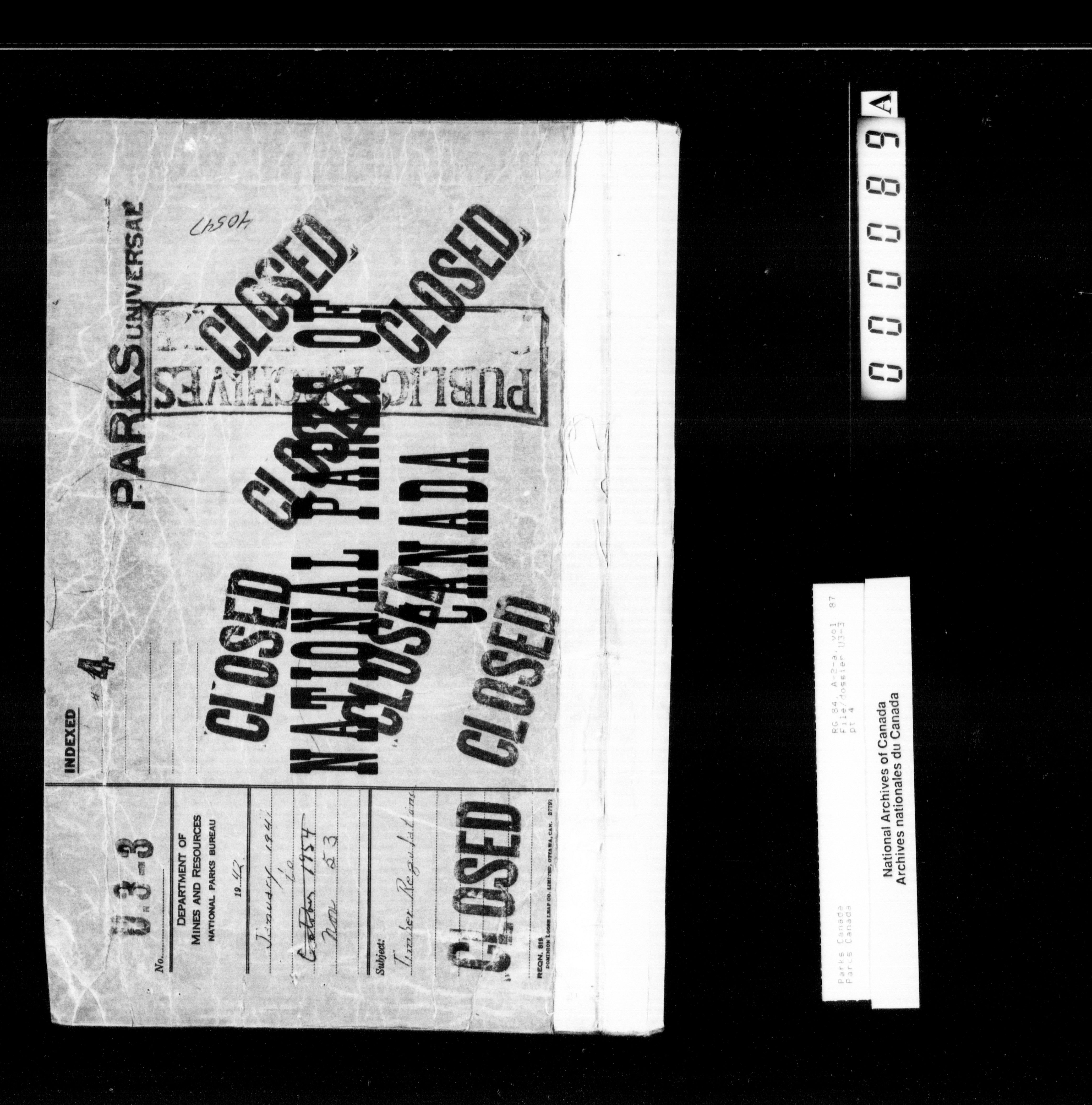Department of Canadian Heritage, Canadian Parks Service : Park/subject classification system - 12866