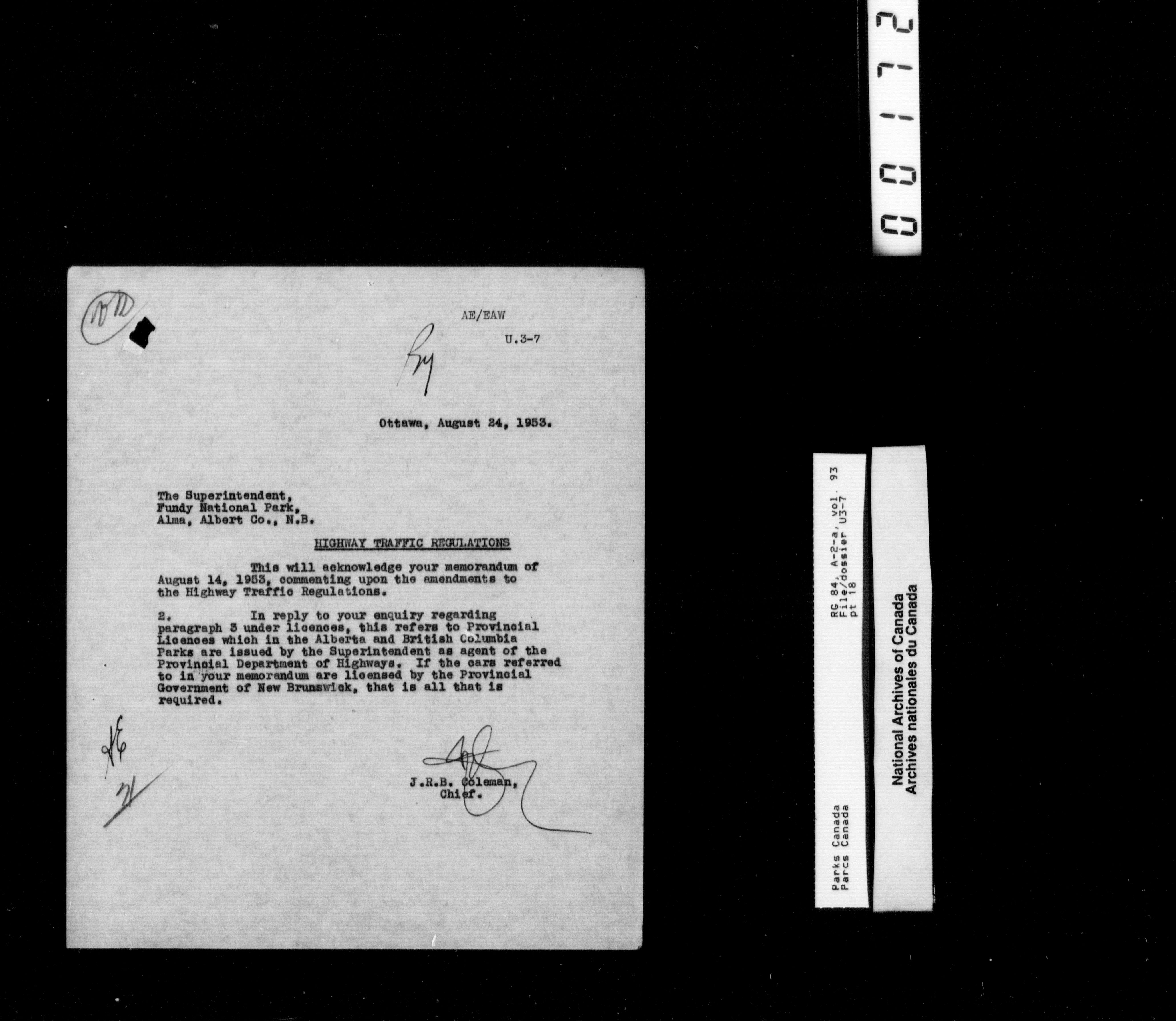 Department of Canadian Heritage, Canadian Parks Service : Park/subject classification system : T-12871
